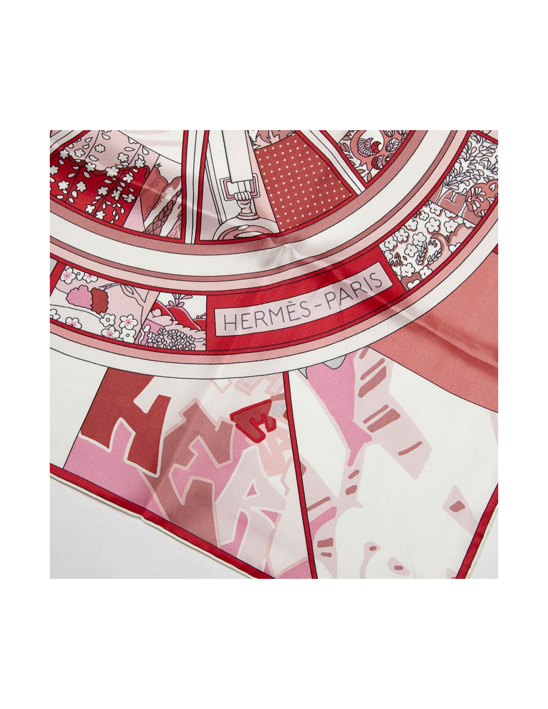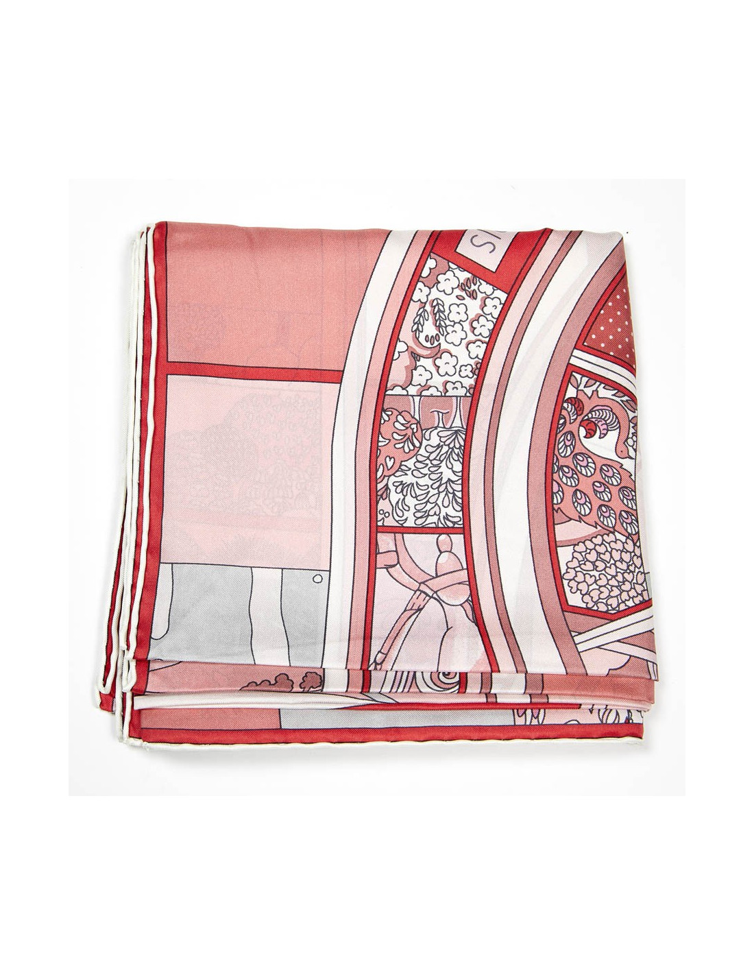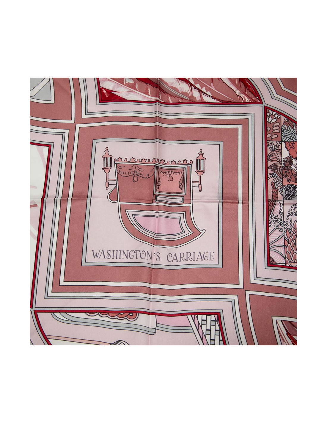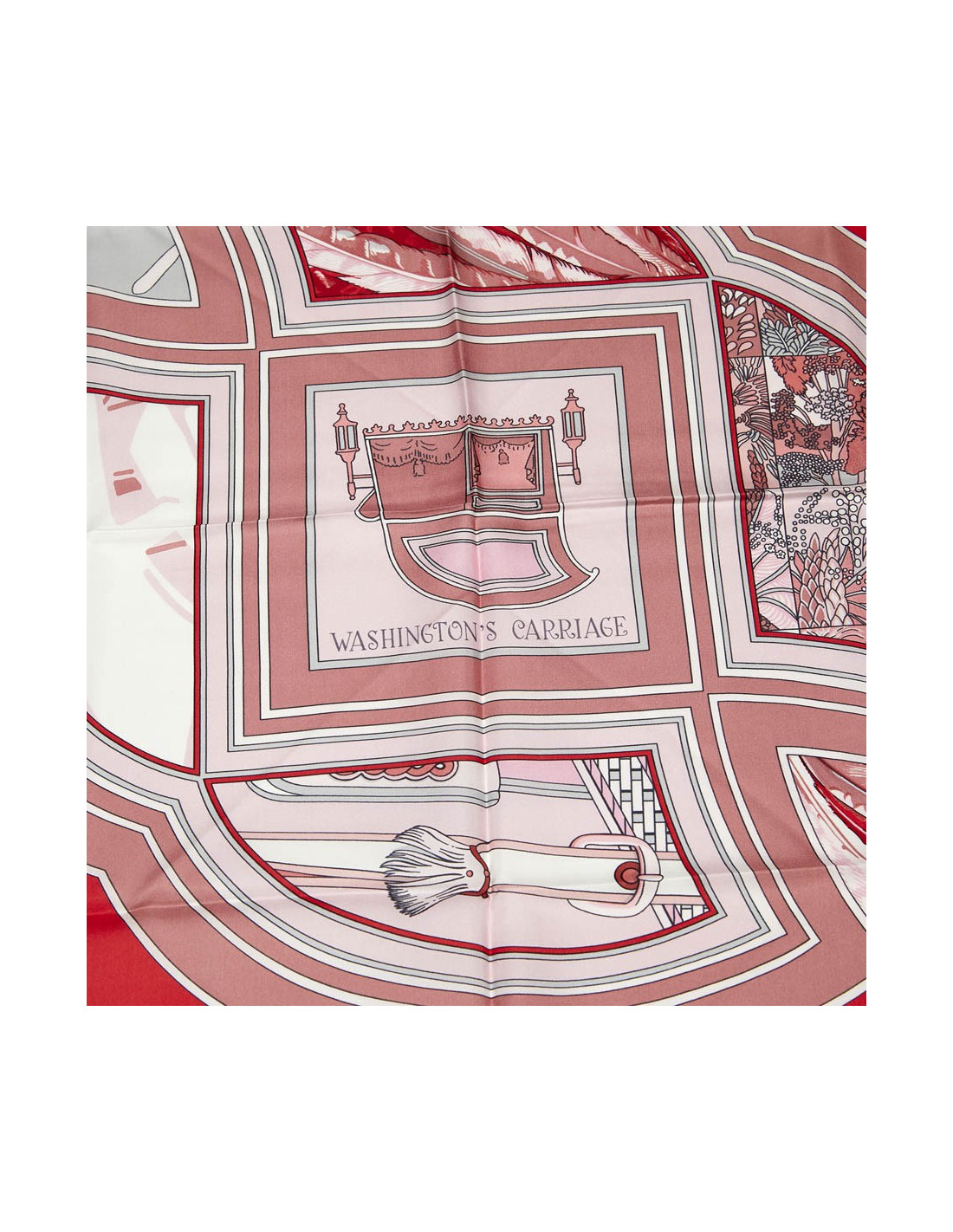 Large Hermes scarf Washington's Carriage. The design features intertwined coupling details, in shades of pink, grenadine and white.