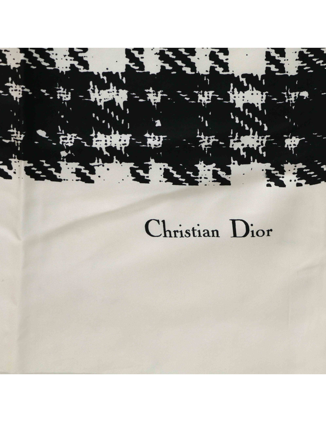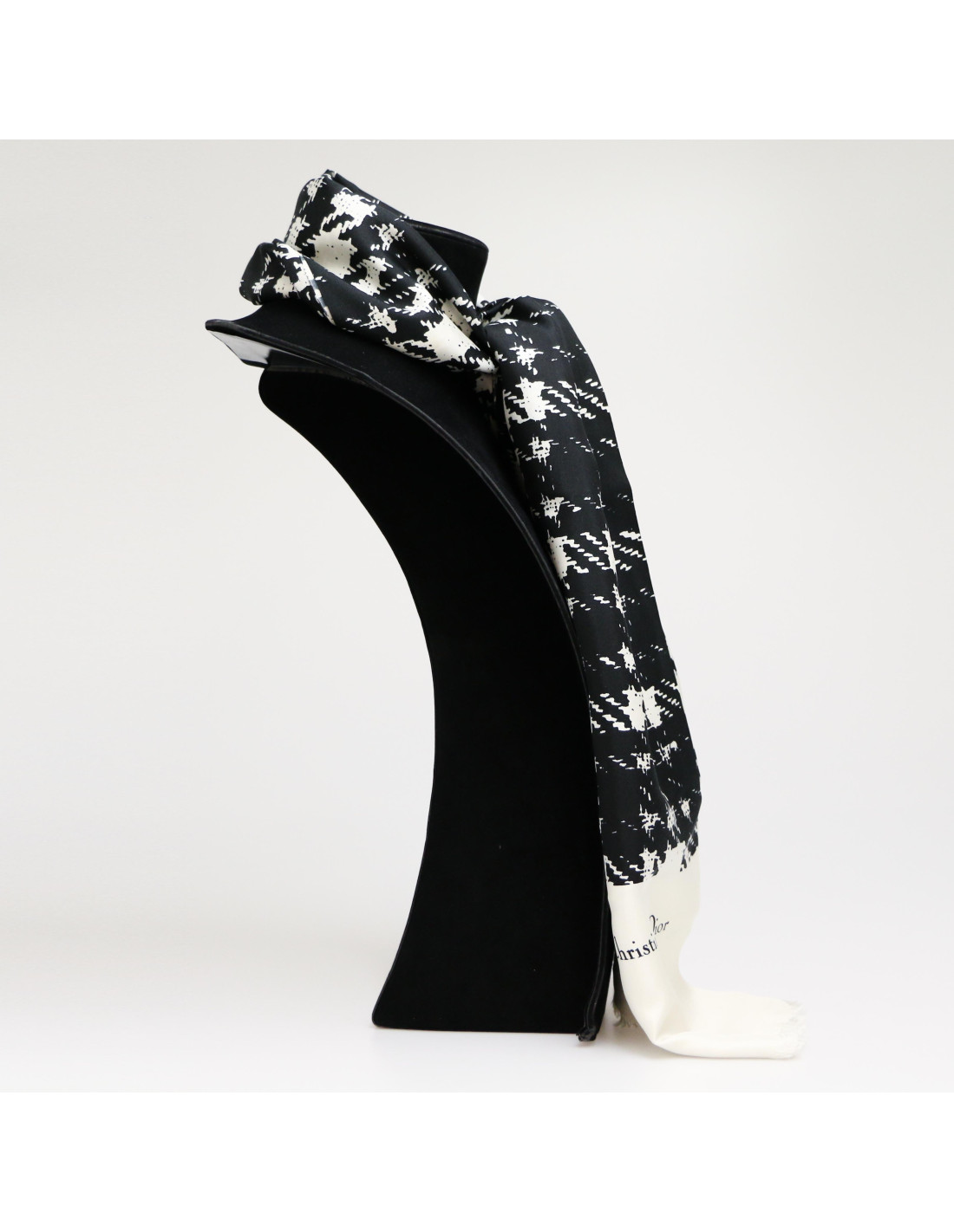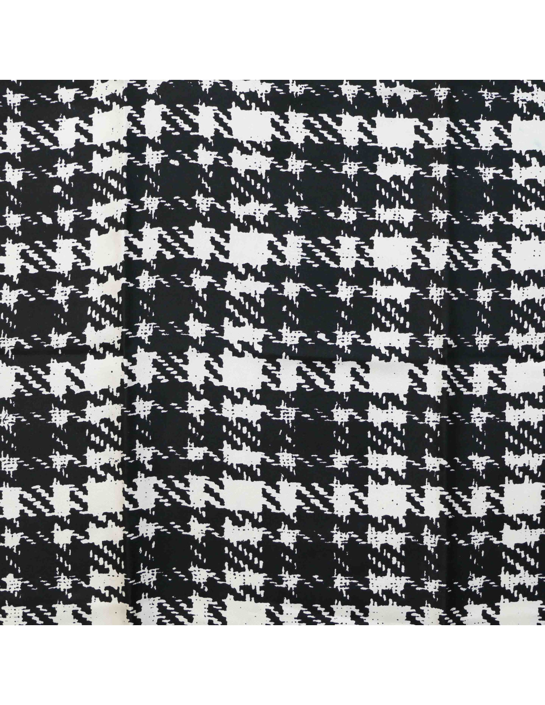 Details : houndstooth-inspired pattern and white frayed-effect edges. Small stains on scarf edges (barely visible).