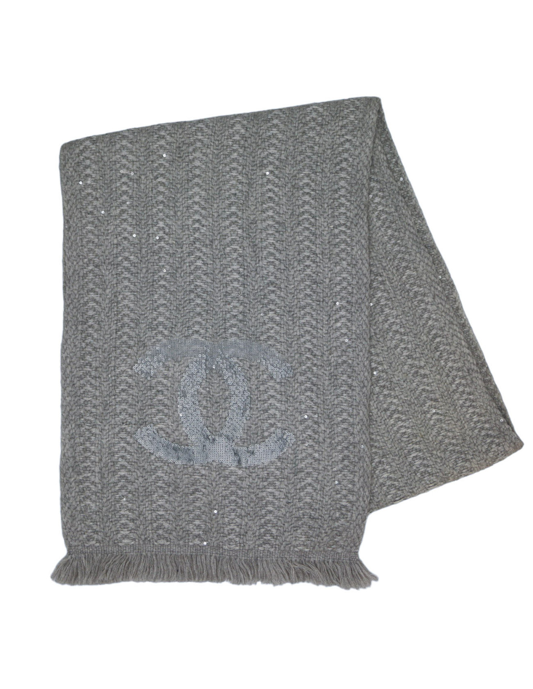 CHANEL grey sequins large scarf
