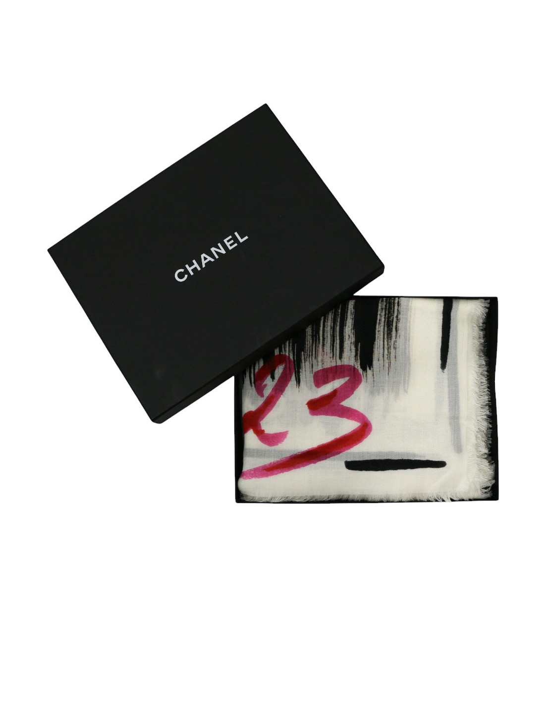 Last items in stock SCARVES AND SHAWLS CHANEL grey cashmere and silk scarf CHANEL 36849 850.00 € CHANEL grey sequins large scarf Condition : very goodMade in ItalyMaterials : cashmere 80%, silk 15%, Polyester 5% , sequinsColor : greyMeasurements : 212 x 35 cmStamp : yesDetails : large cashmere scarf with fringed trims at each end. A large CC in sequins. Add to cart