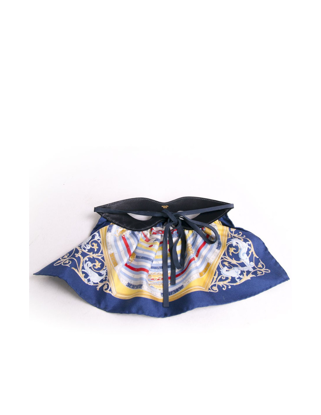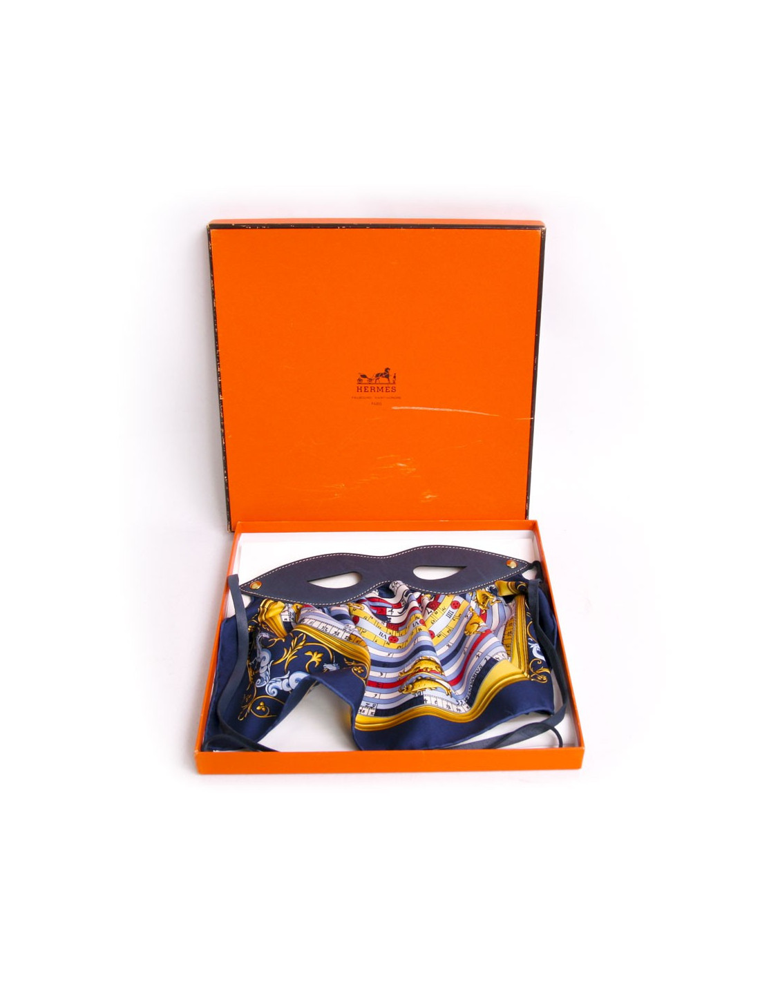 Hermès mask, in smooth blue leather and silk scarf representing the signs of the 'Zodiac', in blue tones.
