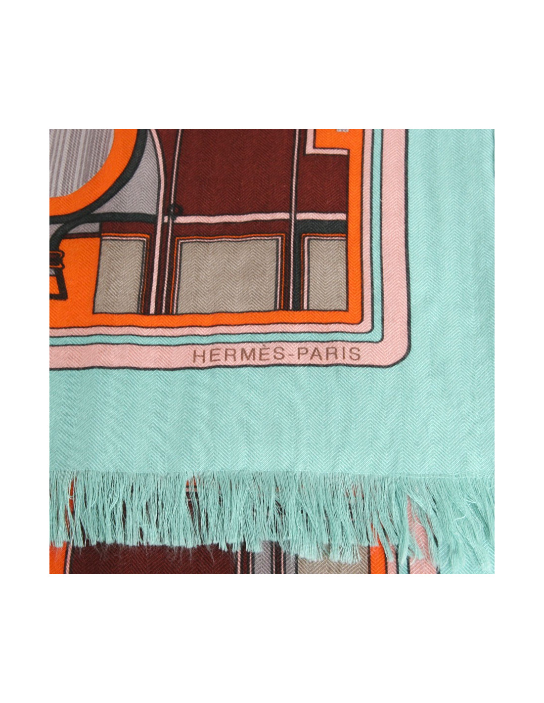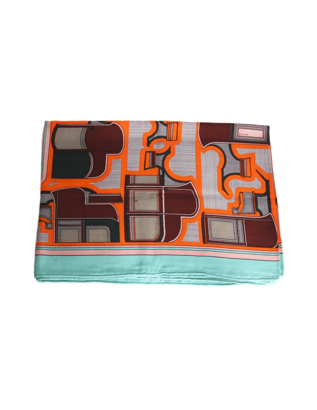 HERMES cashmere and silk orange and green shawl