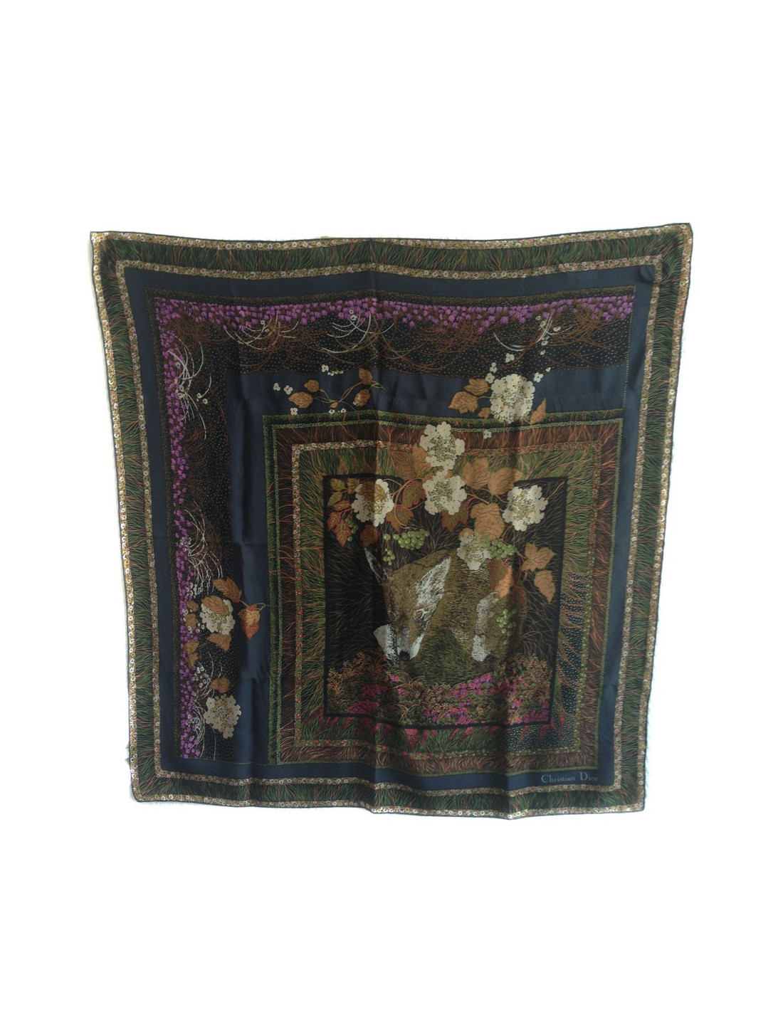 Square of silk Christian DIOR in autumnal shades (dark green, Brown, black). Vintage square. Material label presents. The trailer is perfect. The square is in perfect condition. Has been cleaned to a luxury cleaners.