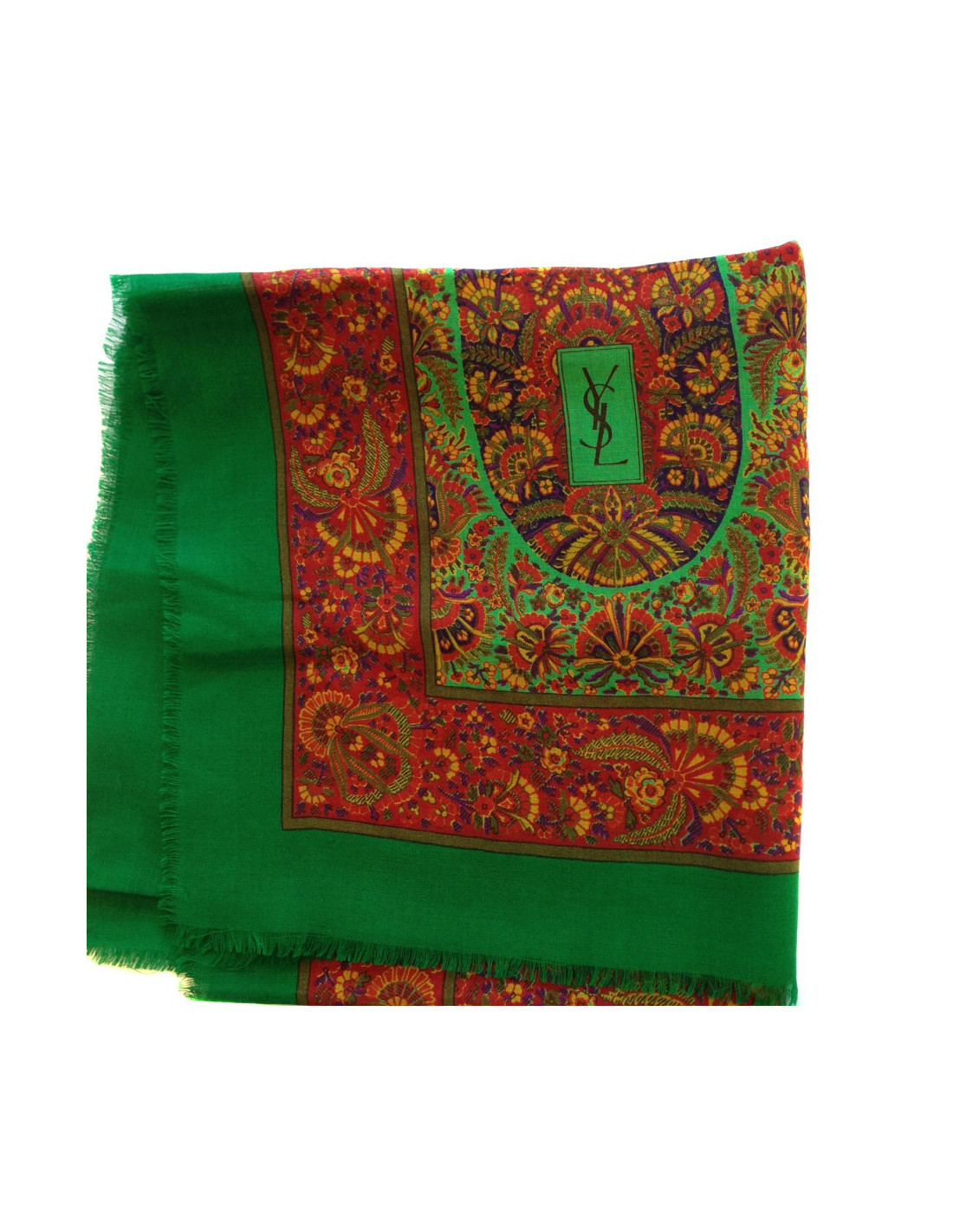 Great YVES SAINT LAURENT in wool and silk green printed stole