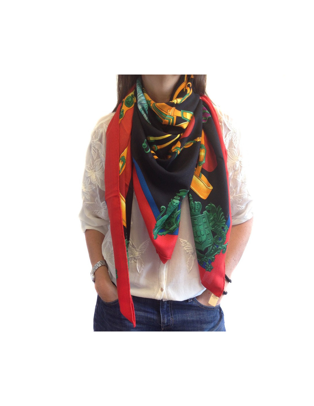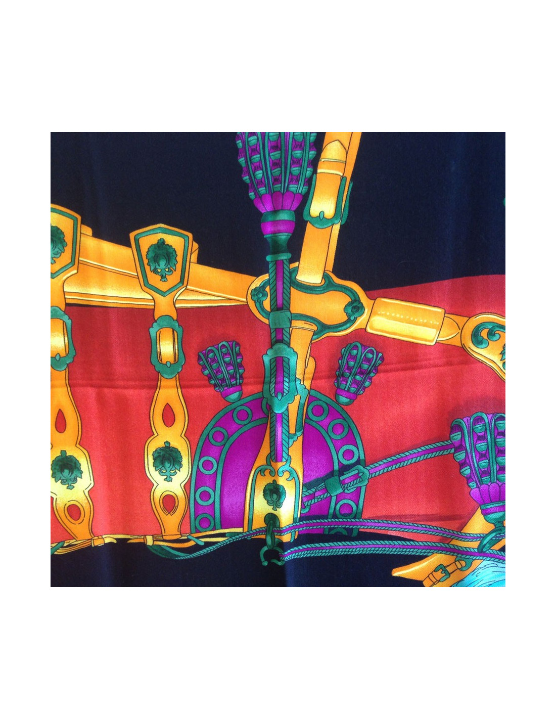 Shawl HERMES "Harness of court" in cashmere and silk red, black, green