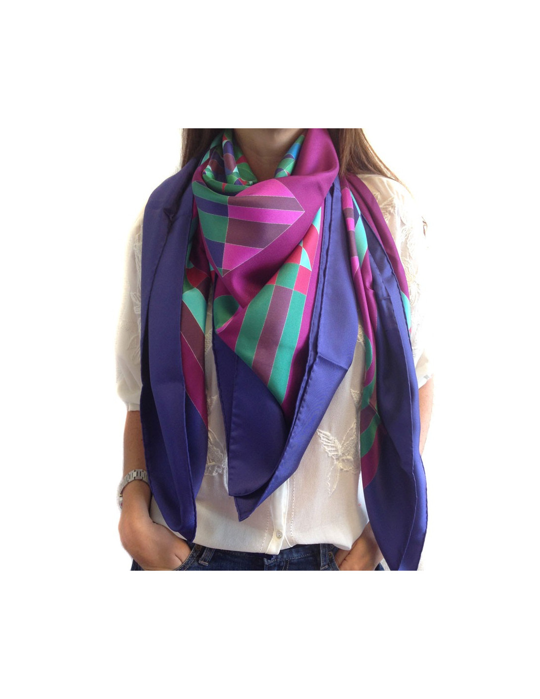 HERMES "Psyché" purple large silk square scarf