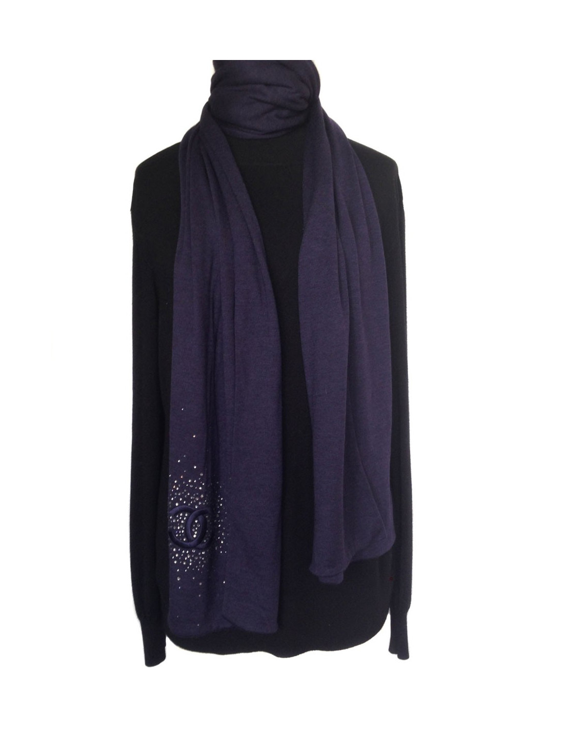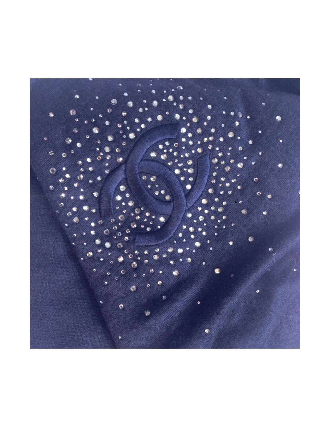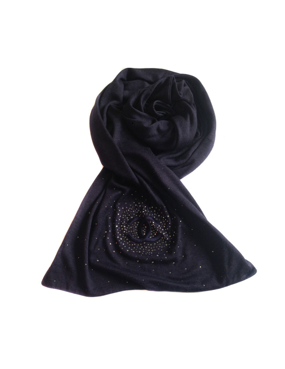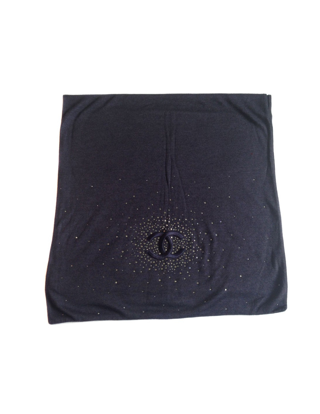 Blue CHANEL scarf dark cashmere, silk and Swarovski rhinestones