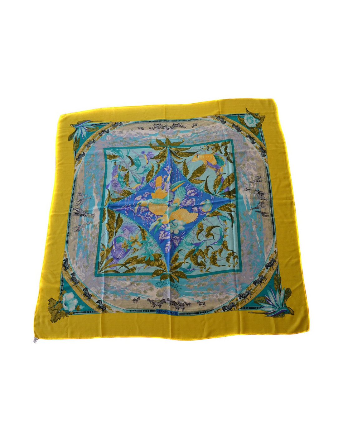 Shawl HERMES "Tropics" in Kashmir and yellow silk