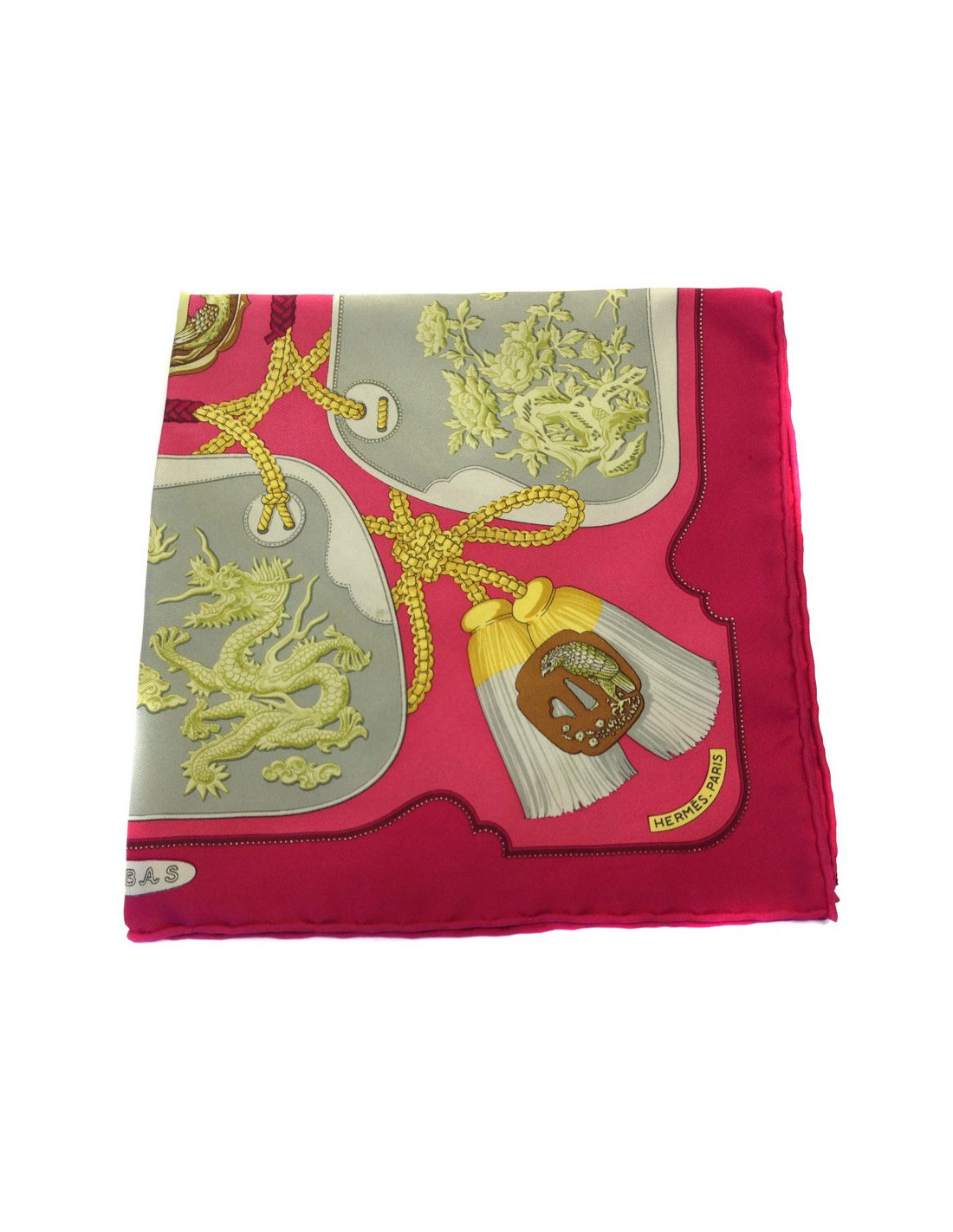 Gavroche "Tsuba" HERMES silk scarf pink