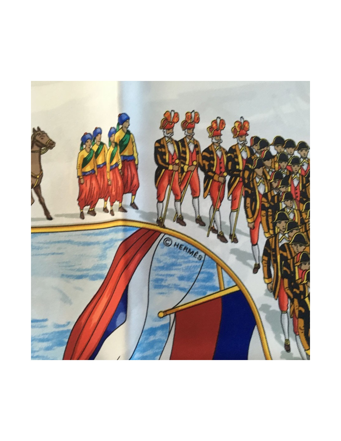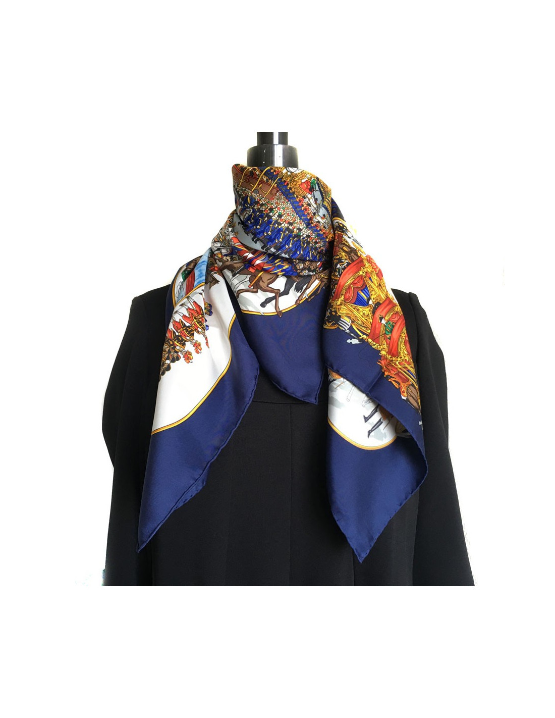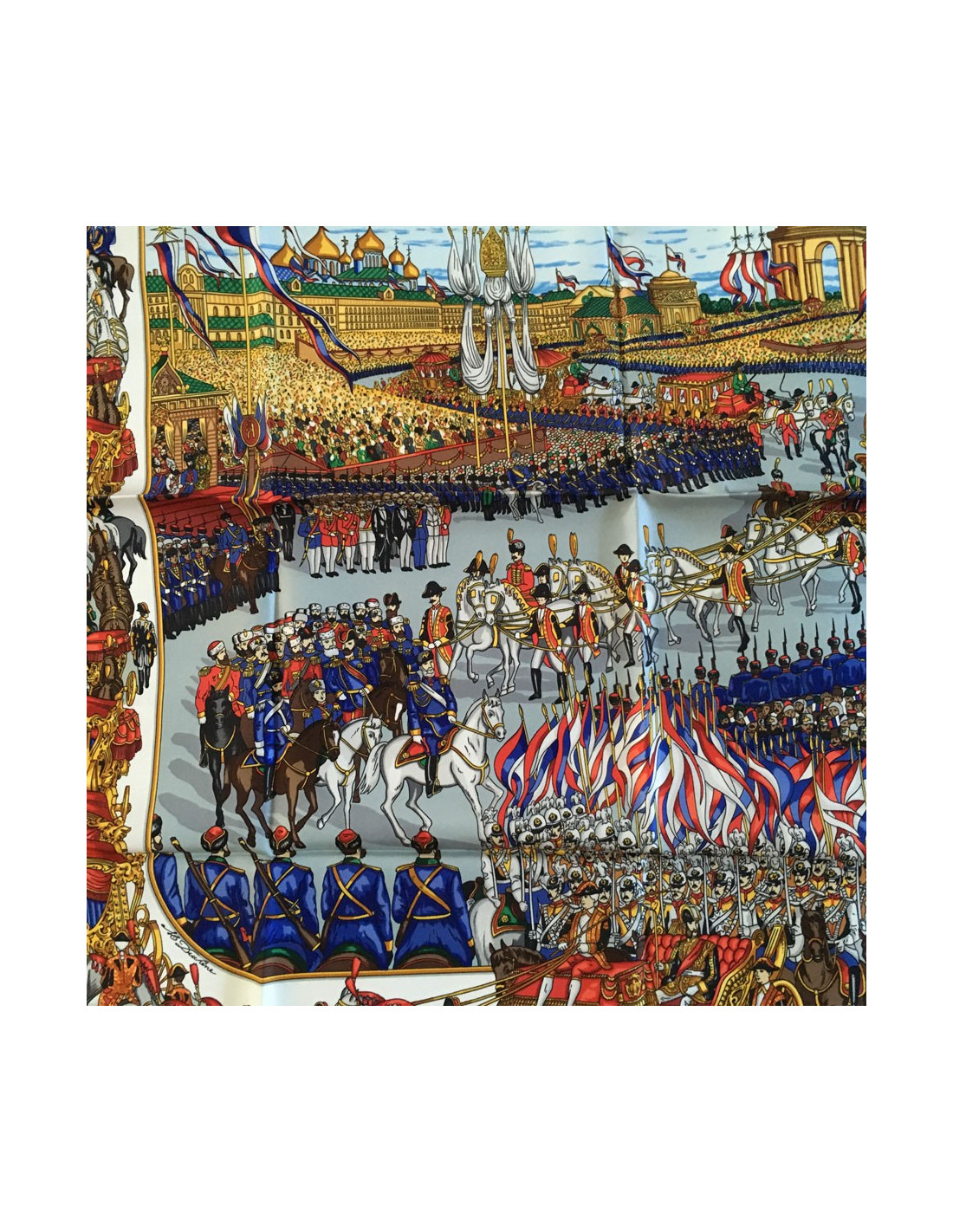 Square HERMES "Great procession in Moscow" in blue silk