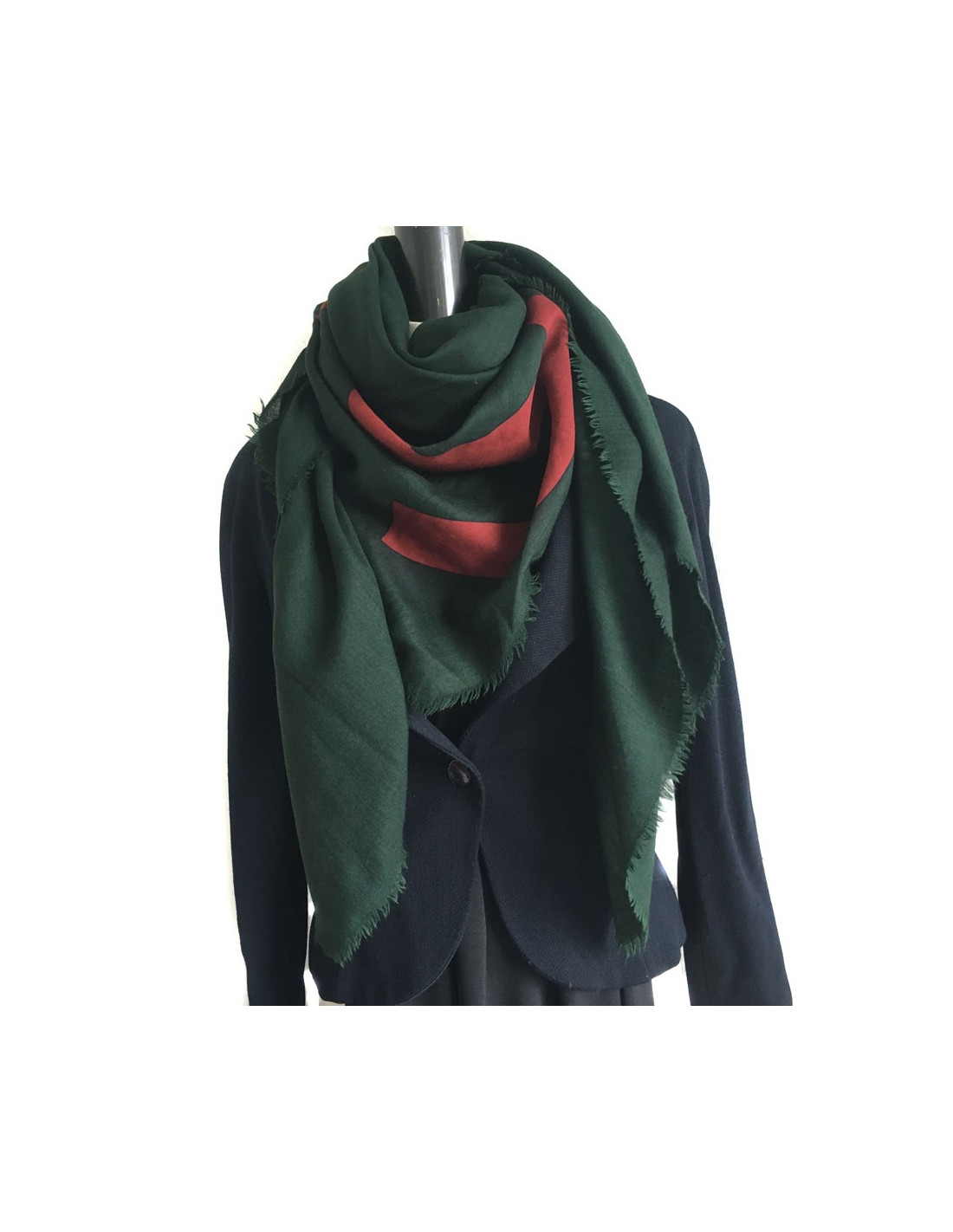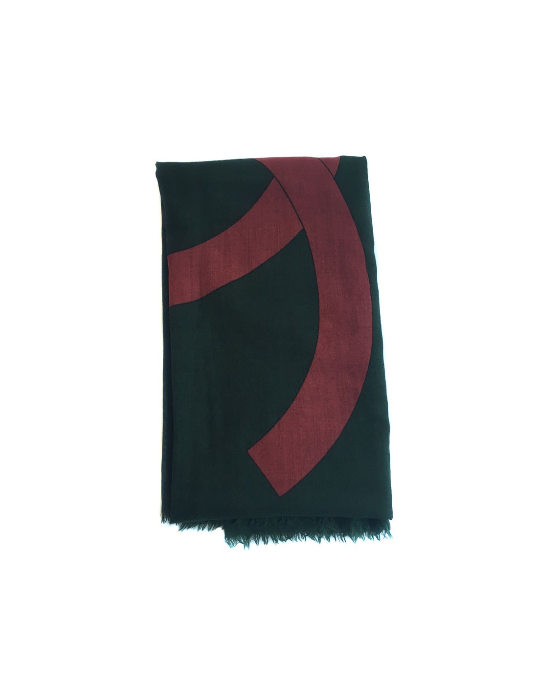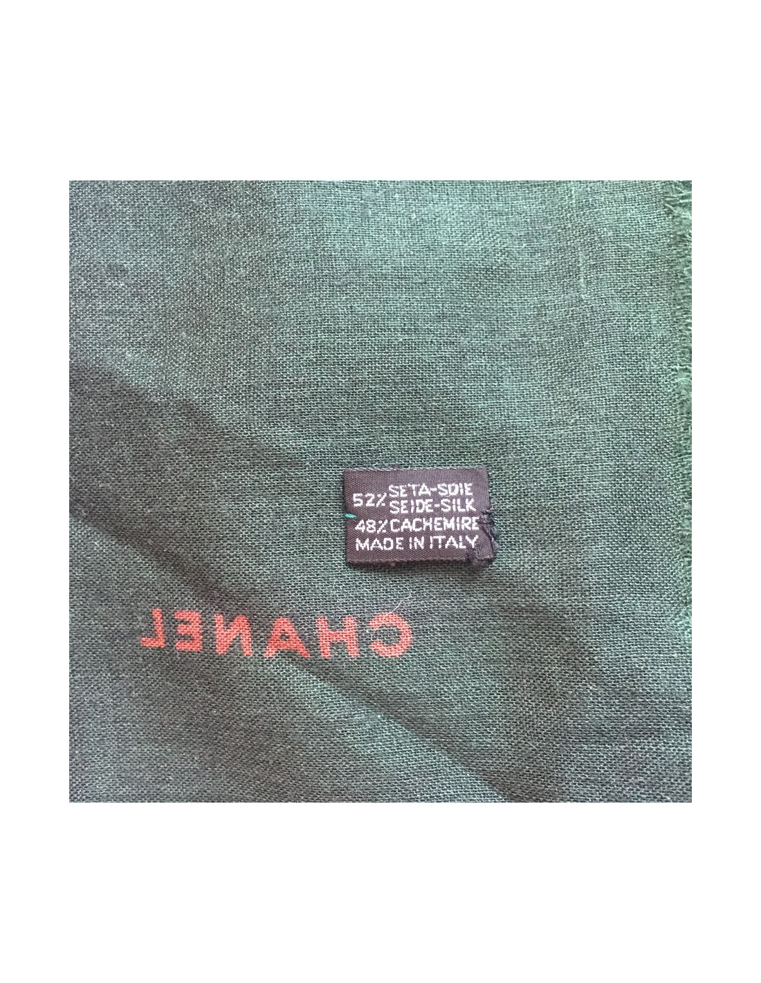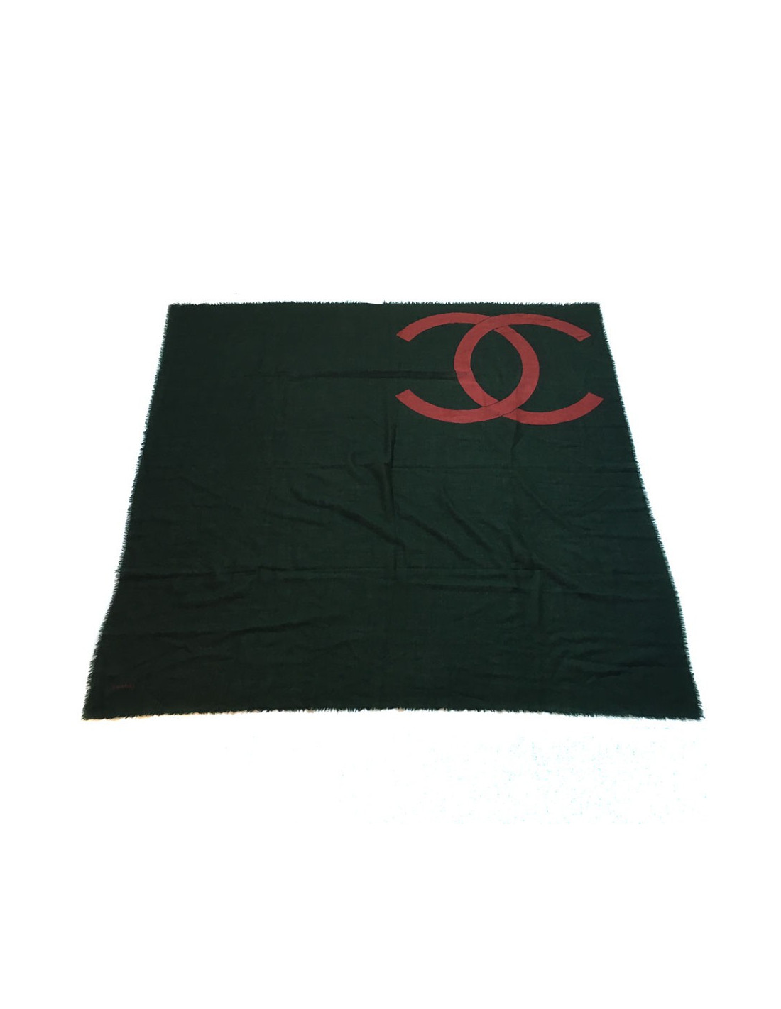 CHANEL scarf silk and cashmere green and red brick