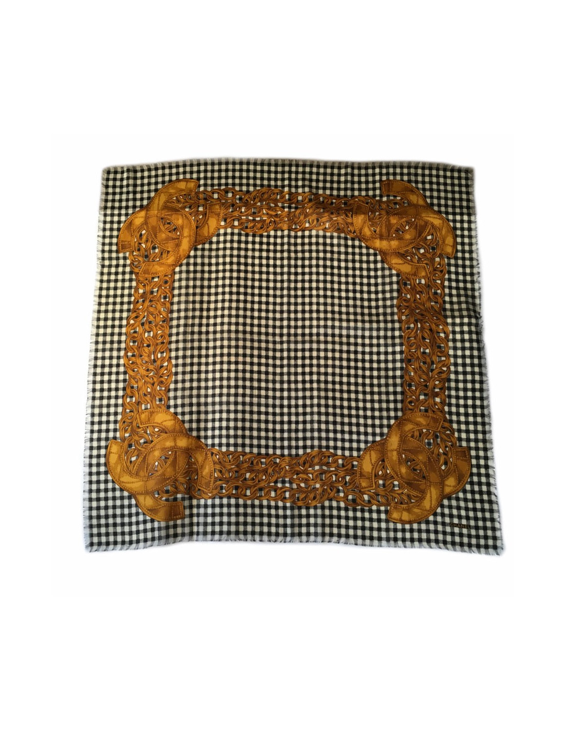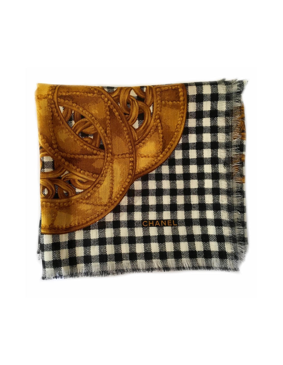 New Last items in stock SCARVES AND SHAWLS Vintage Couture Chanel shawl CHANEL 40511 2,900.00 € Vintage Chanel Couture golden yellow silk shaw Condition: very goodMade in FranceMaterial: 100% silkColor: golden yellow, red, multicoloredDimensions: 120 x 120 cmYear: vintageDétails : The design is a captivating ode to Chinese inspirations, reminiscent of traditional tapestries. It features an enchanting landscape populated by graceful horses, majestic... Add to cart