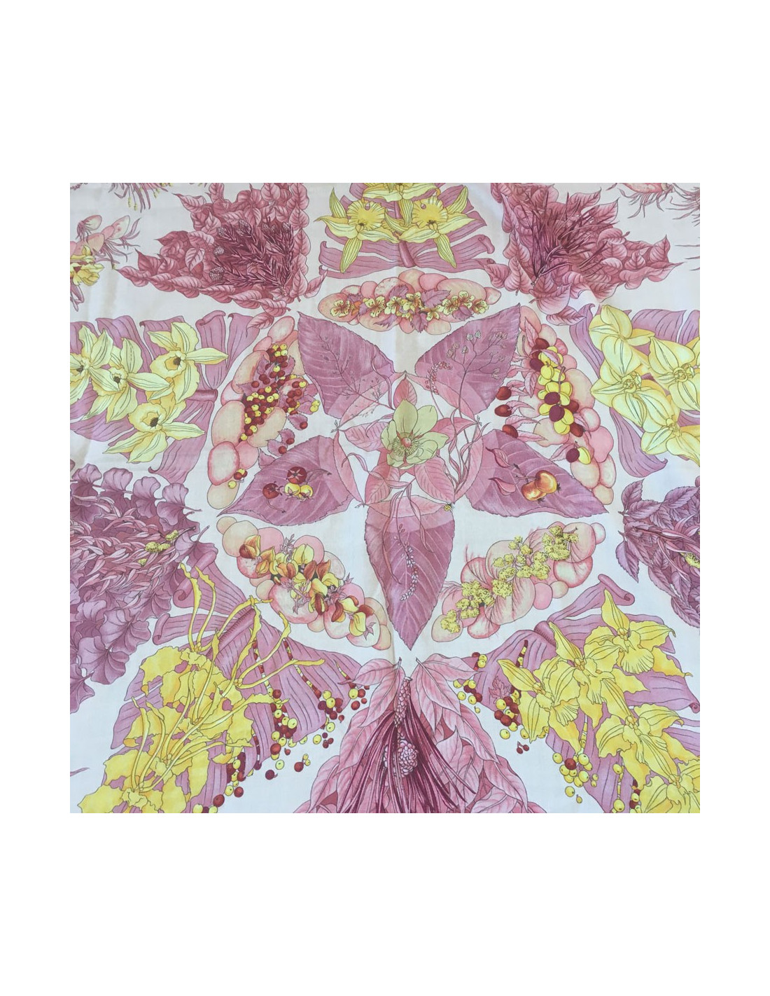 Last items in stock SCARVES AND SHAWLS HERMES 'Psyché' multicolor silk large square scarf HERMES 17238 700.00 € HERMES 'Psyché' multicolor silk large square scarf Made in FranceCondition: excellentMaterial: silkColors: ochre, orange, fuchsia, brownMeasurements: 134x132cmDesigner: Sophie Koechlin Details: the rolled hem is in impeccable condition Delivered in a Valois Vintage Paris dustbag Add to cart