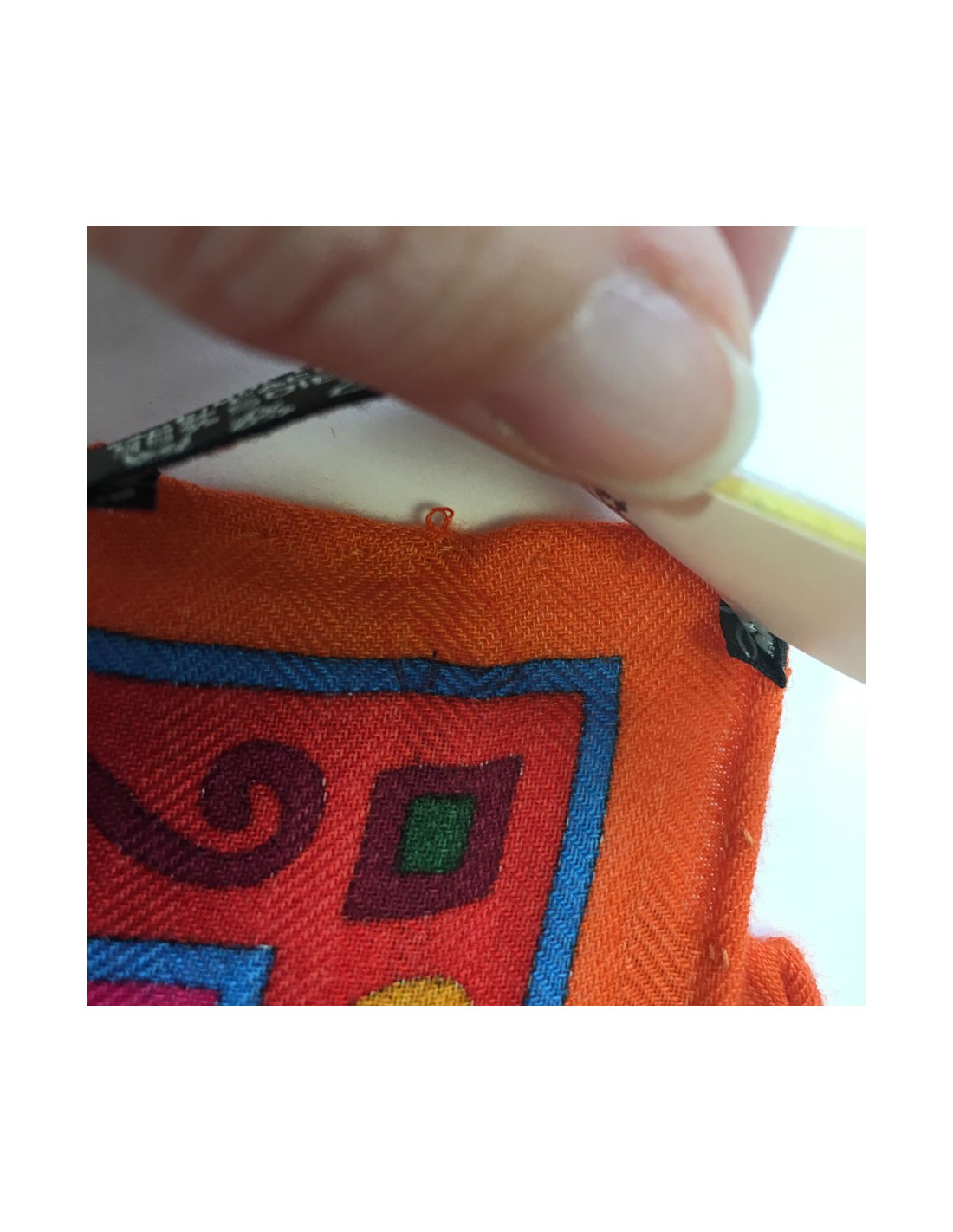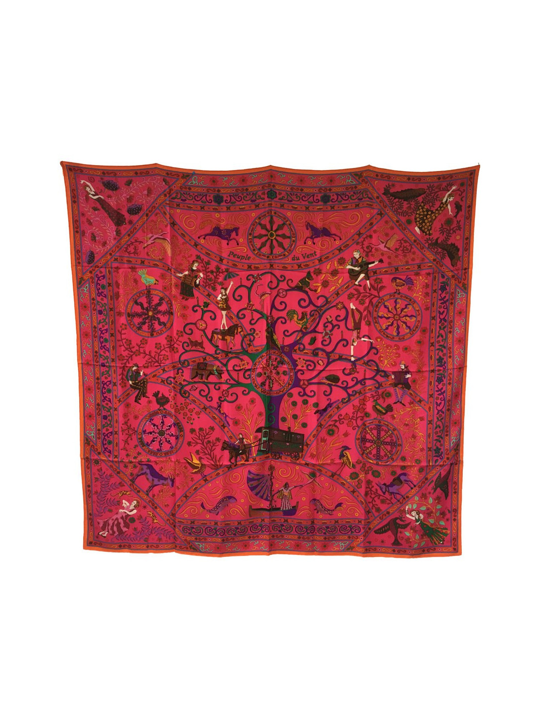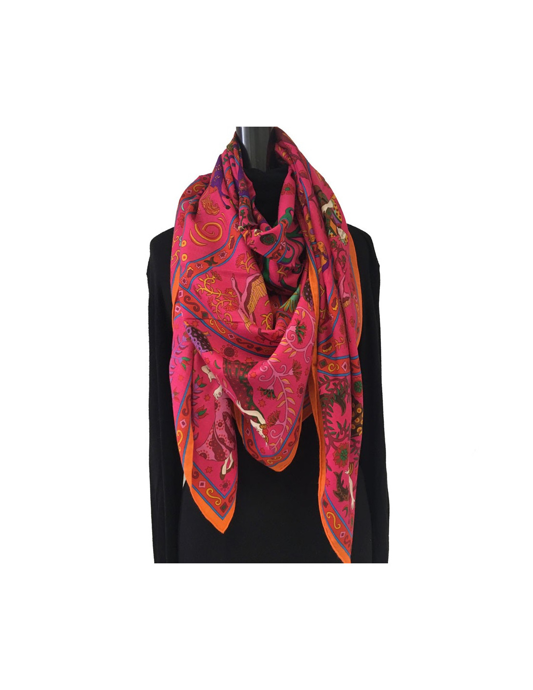 HERMÈS shawl 'Peuple du vent' in and orange, Indian pink, green cashmere and silk fabric.