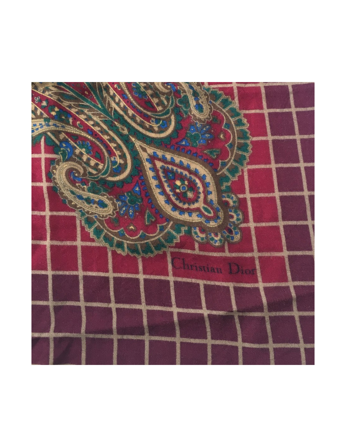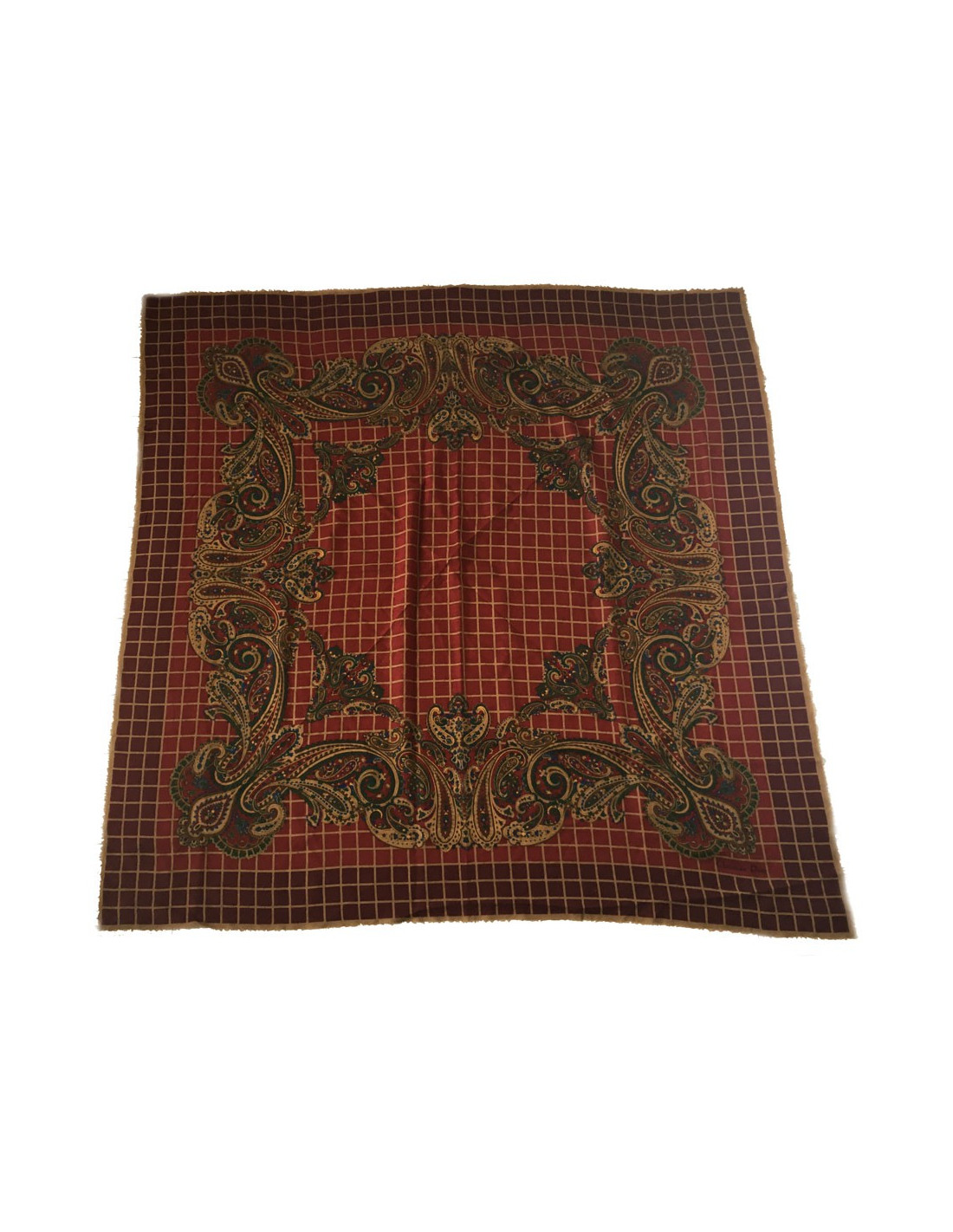 DIOR bordeaux, green and Brown with small fringe shawl
