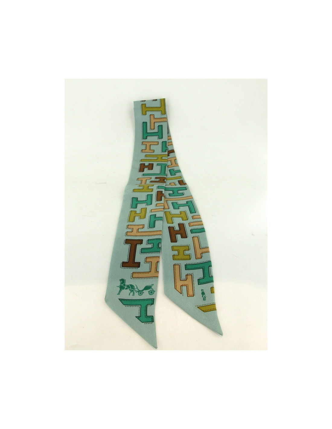Twilly HERMES silk green of printed water H