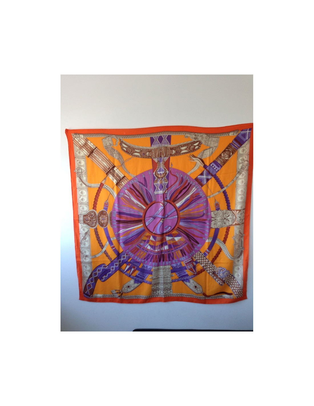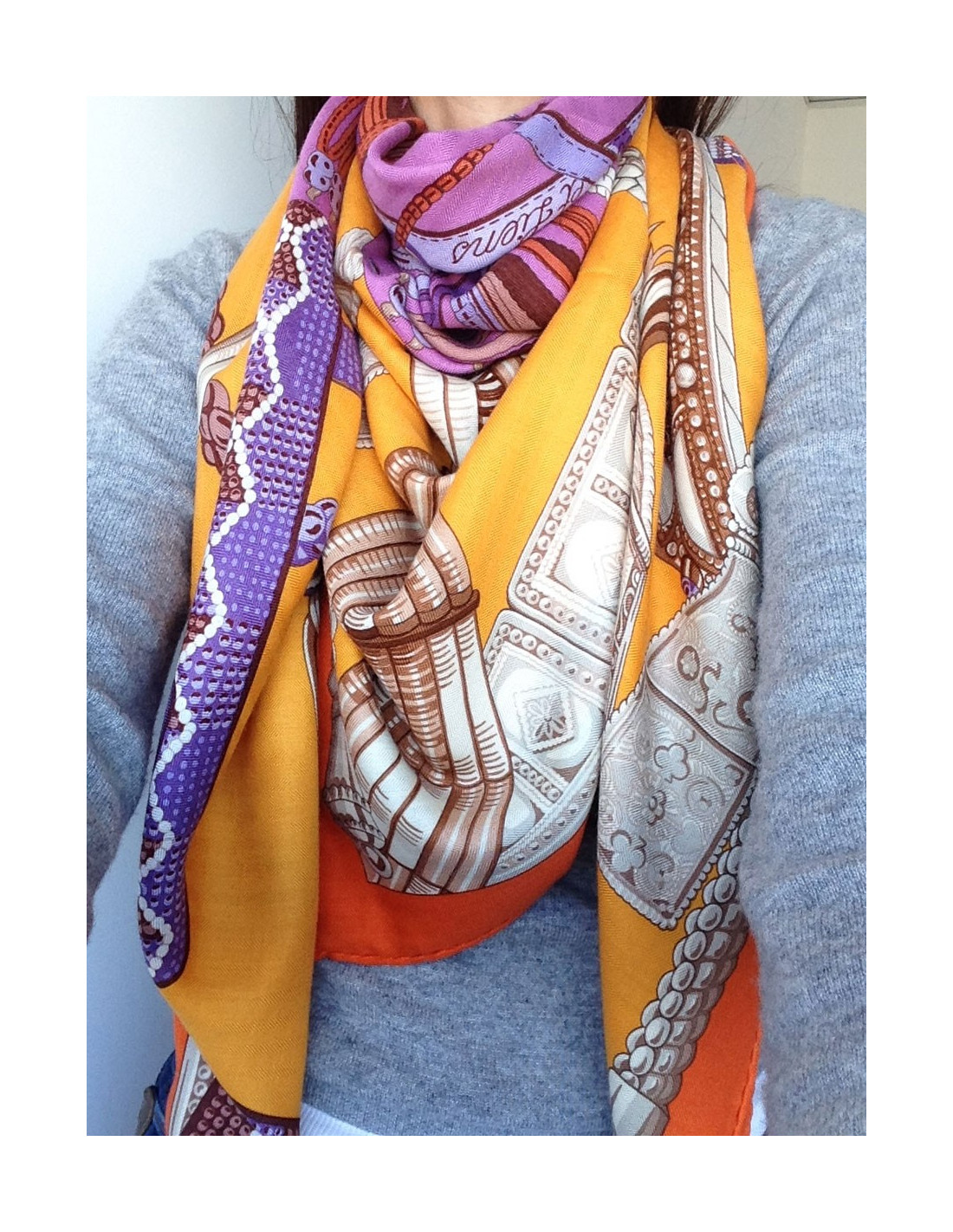 Shawl "Belts and links" HERMES cashmere and silk purple and orange