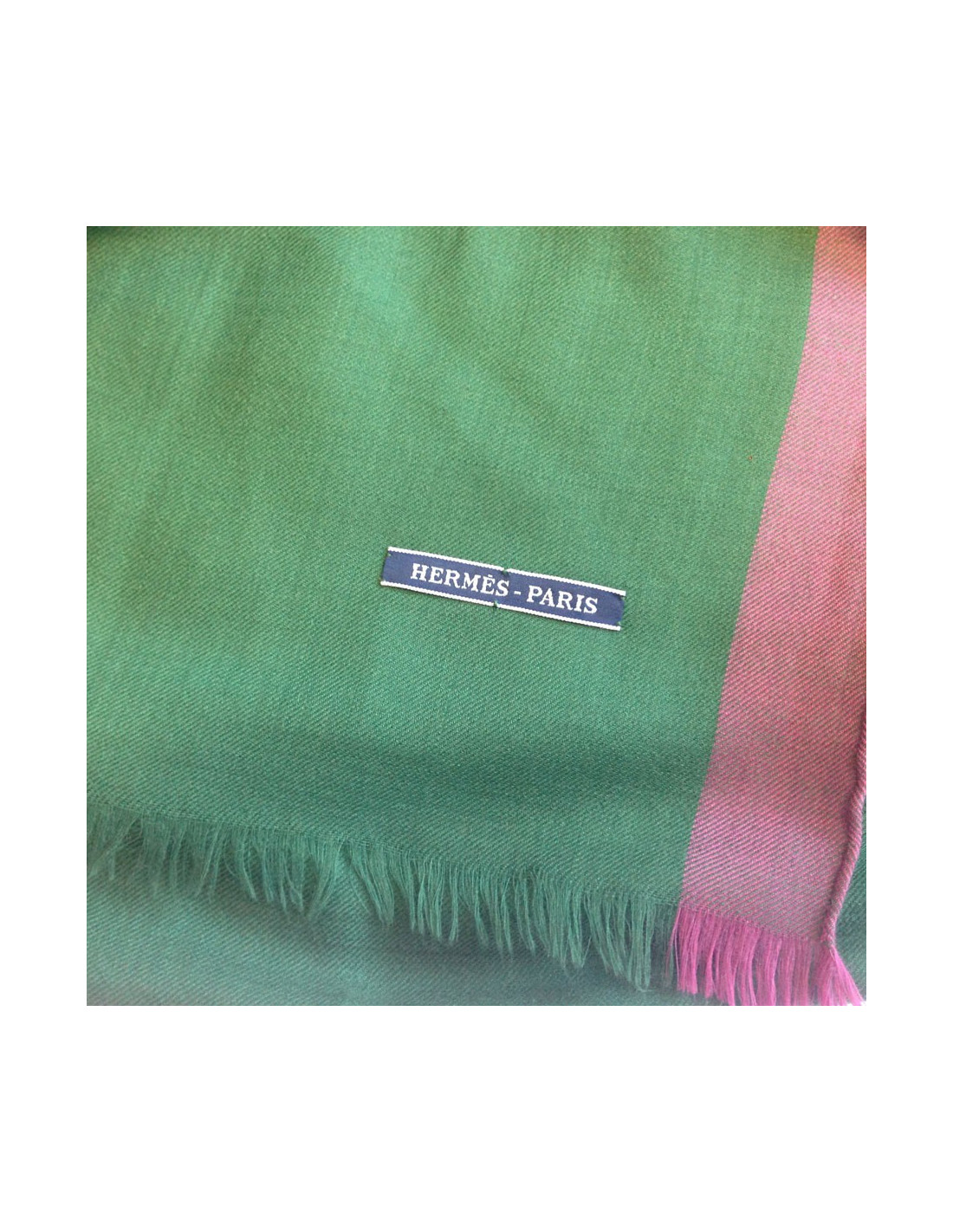 Shawl HERMES fringe green English silk