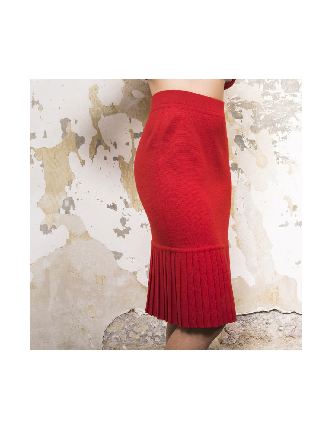 - Skirt worn close to the body, pleated on the bottom.
