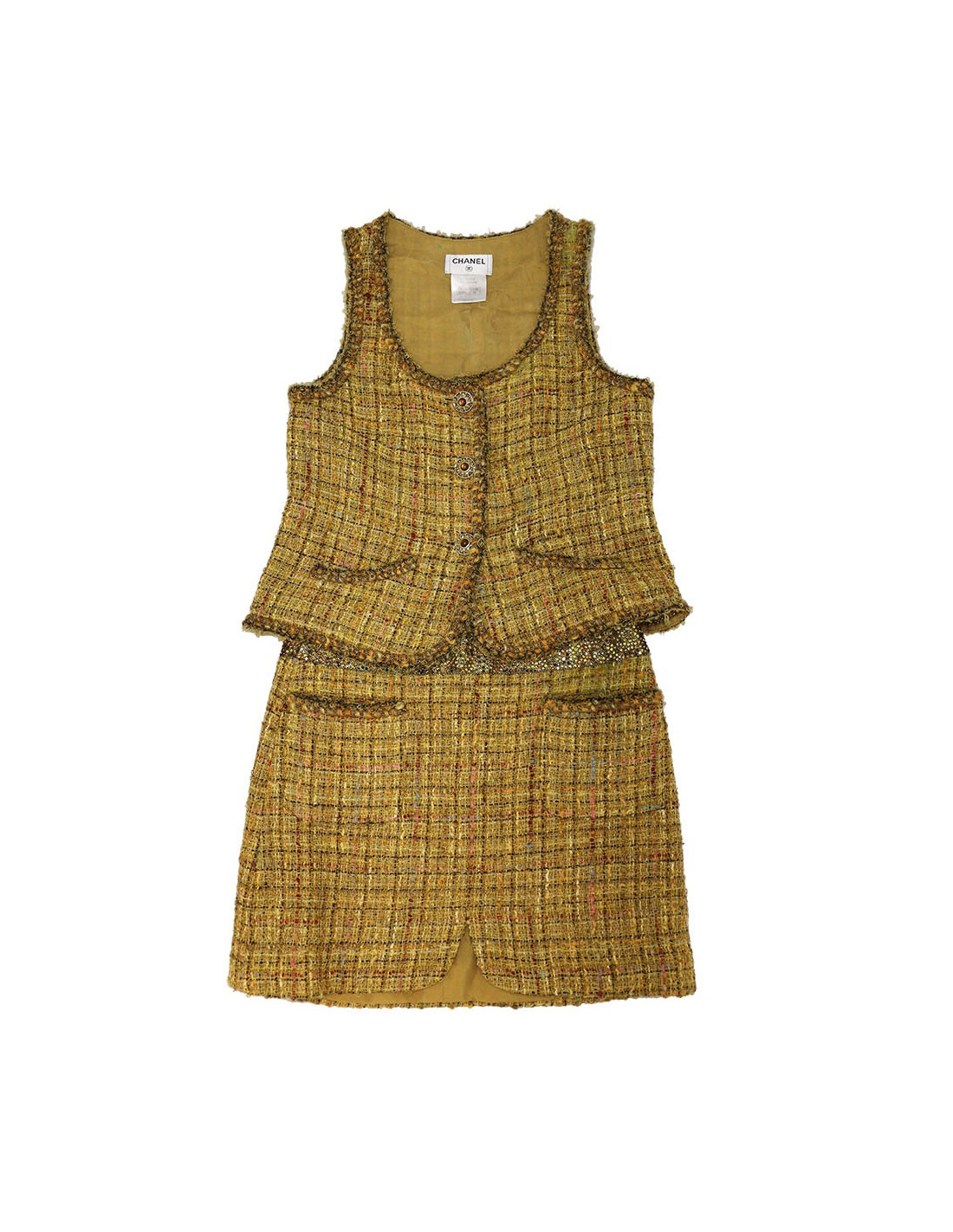 Beautiful Chanel set with yellow jacket and skirt in size 36