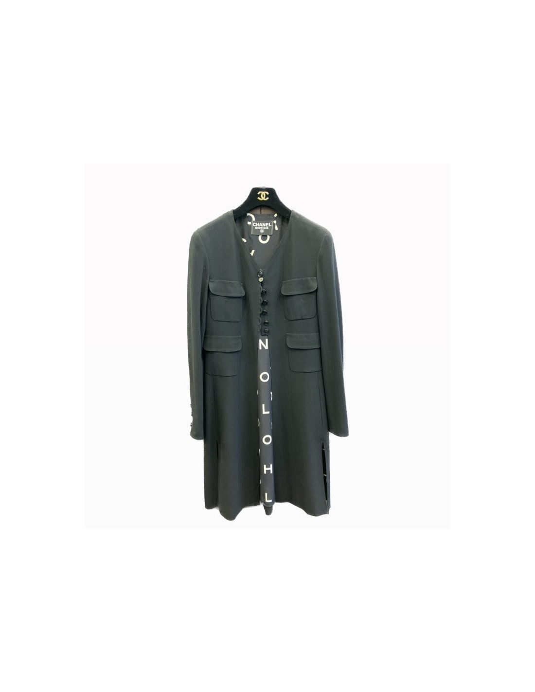 Last items in stock SETS CHANEL grey suit Size 40 FR CHANEL 32484 3,100.00 € CHANEL black ang grey suit ( skirt and jacket) Condition : very goodMade in FranceSize : 40FRMaterials : wool, raw silkLining: silkColors - jacket : marled black, skirt : blackMeasurementsJacket : shoulders 40 cm, under chest 45 cm, height 65 cm, sleeve length 60 cm, wrist circumference 25 cmSkirt: total length 55 cmDetails : black contrasting stripe, 13... Add to cart