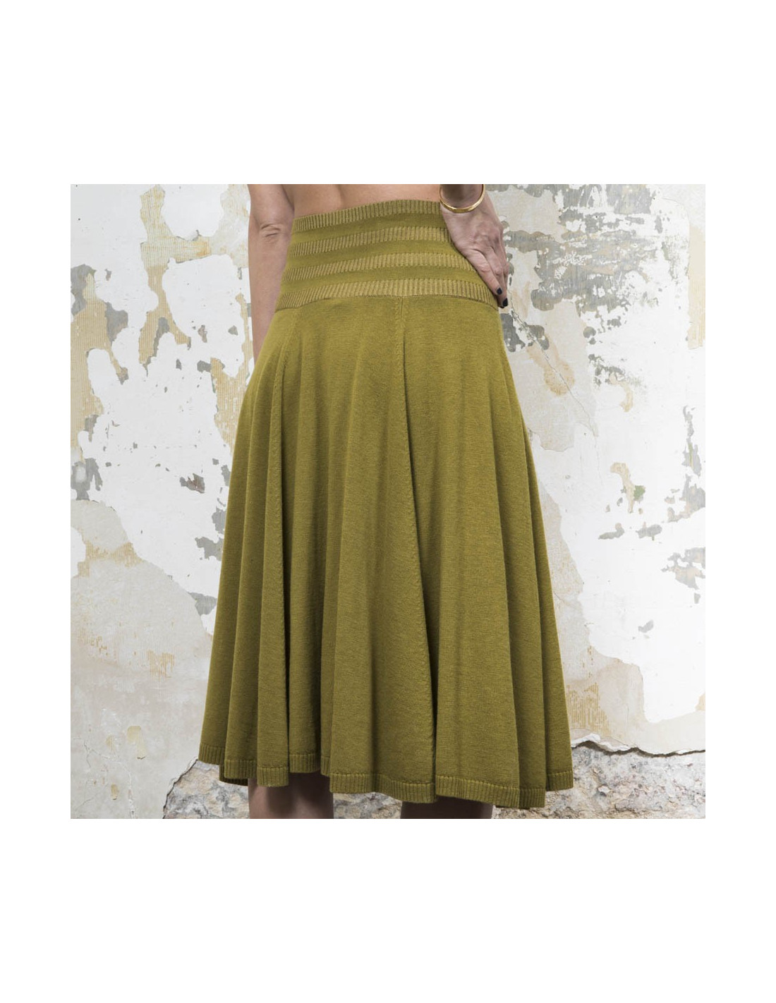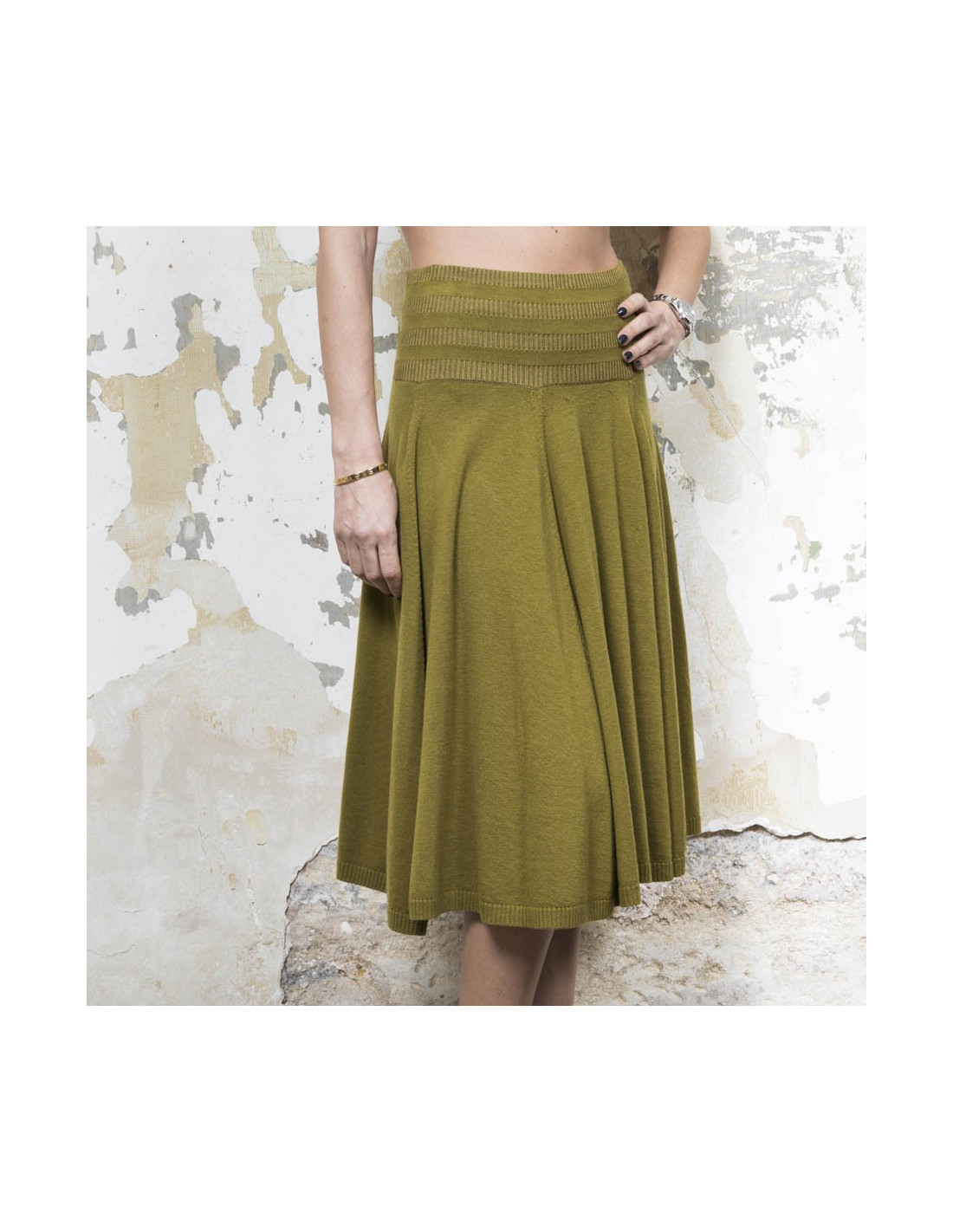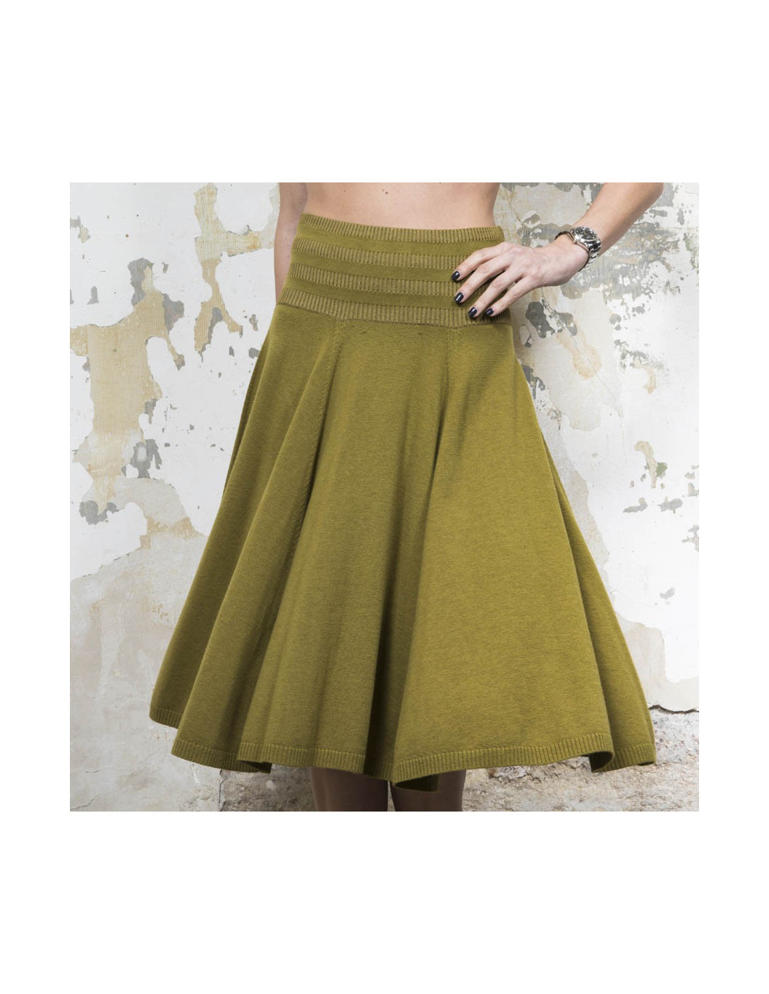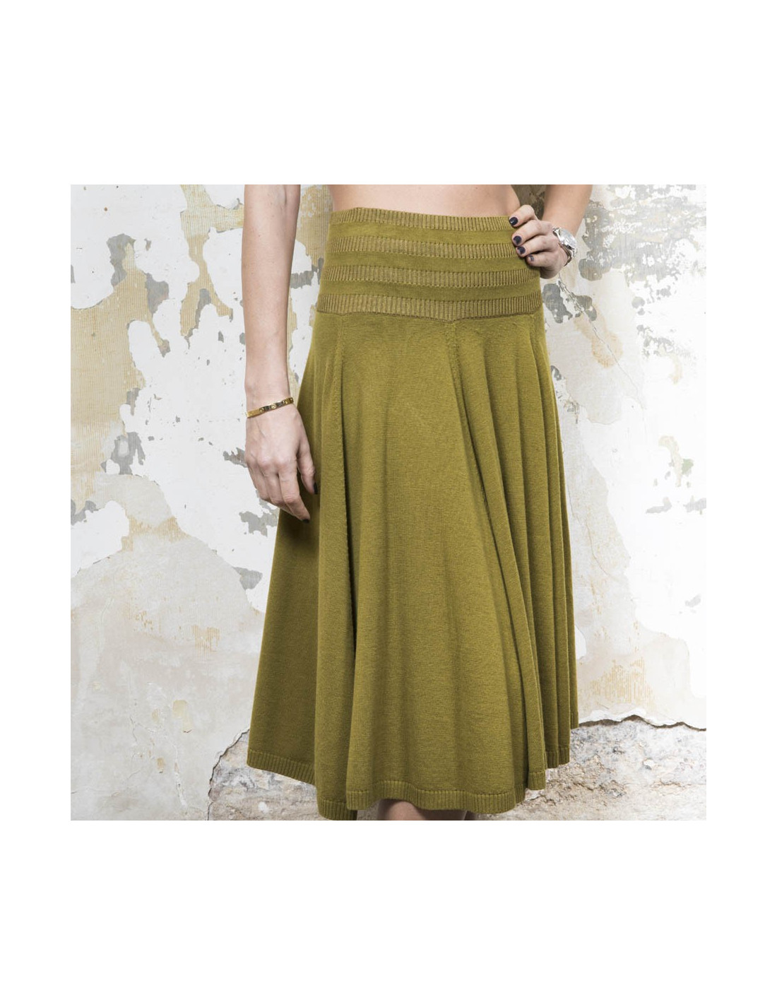KENZO flared skirt in green khaki wool, silk and cashmere size S