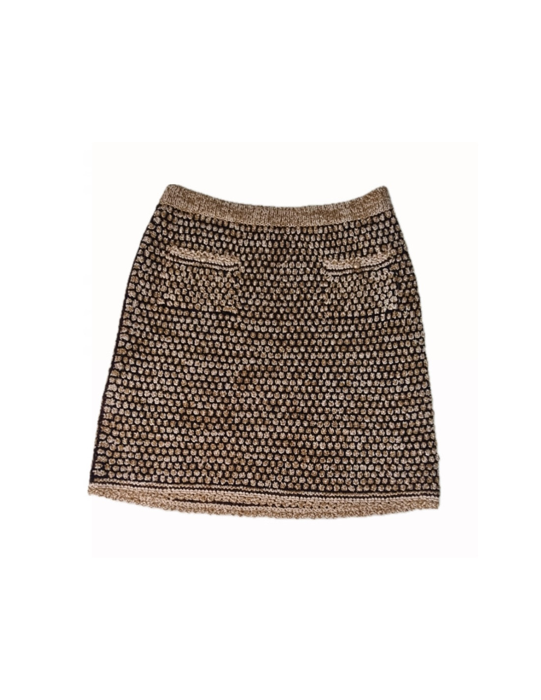 Sold SKIRTS All CHANEL TOP T 38 en SKIRT T 40 en CHANEL 19832 3,500.00 € Beautiful set Chanel, top t 38 en and skirt t 40 FR, material: 70% metal and 23% polyamide. New condition. Recent collection. The top and the skirt are delicate lace with threads of gold and silver. The skirt is lined 100% silk flesh color. has part transparent to the top is also in 100% silk. Never worn. Size flat: top: length of the ramp, 16 cm, 44 cm,... View