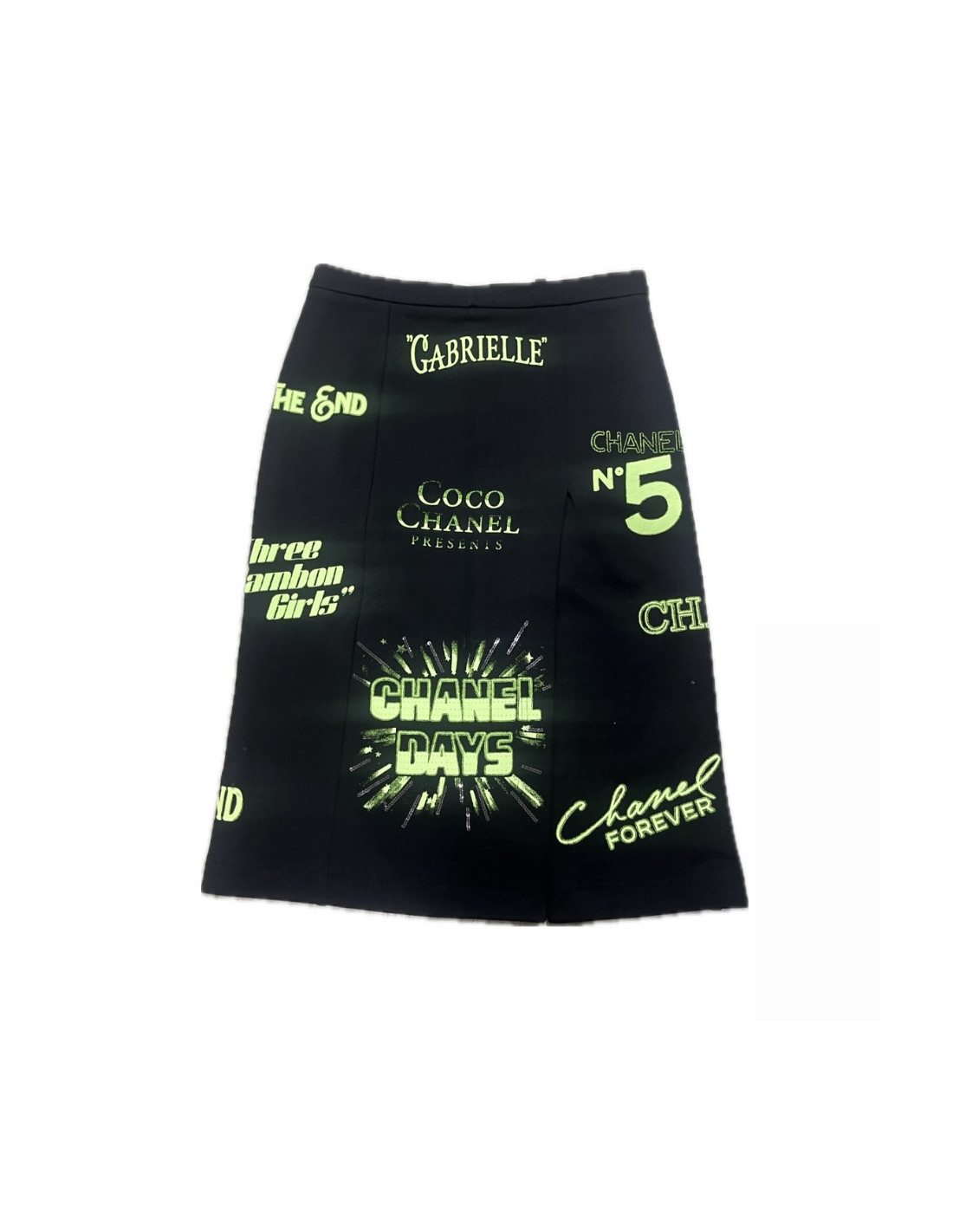 Last items in stock SKIRTS CHANEL Black Skirt in Tweed CHANEL 21528 550.00 € Beautiful Chanel split skirt in black tweed, size 36 Condition: excellentMade in FranceColor: blackMaterials: tweed, silkSize: 36frDimensions: waist 36cm, length 58cm, bottom width 38cm, hips 49cmDetails: wonderful skirt with two pockets on the front with a triangle flip and two black buttons signed CC. The skirt gets smaller on the bottom, it has a split... Add to cart