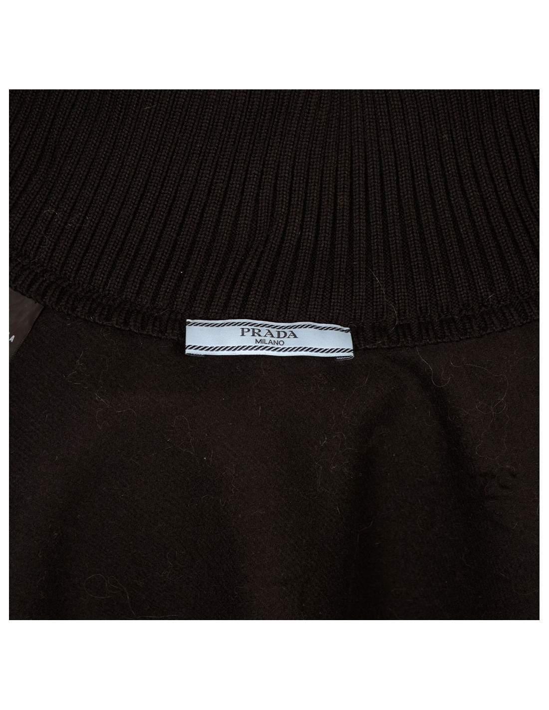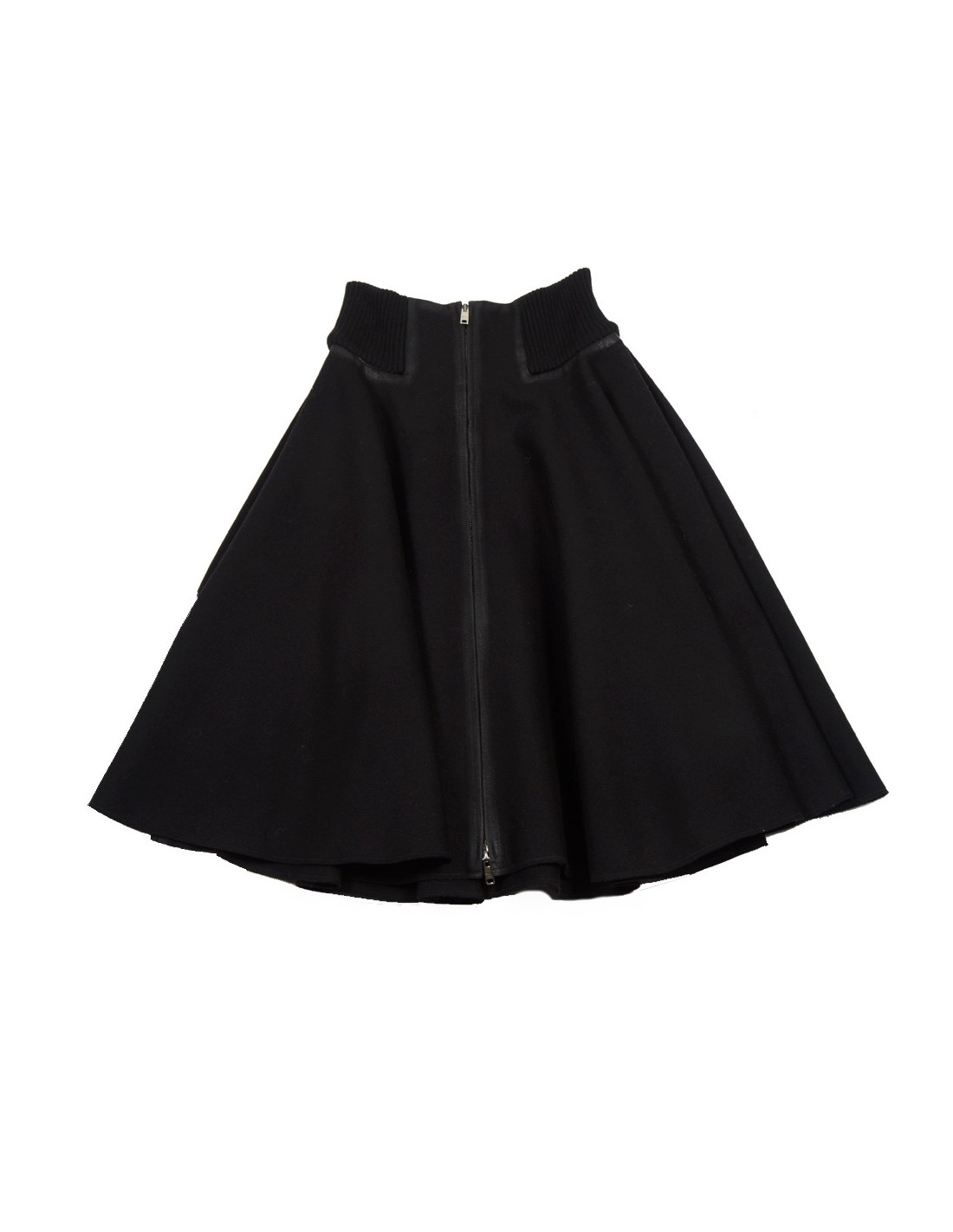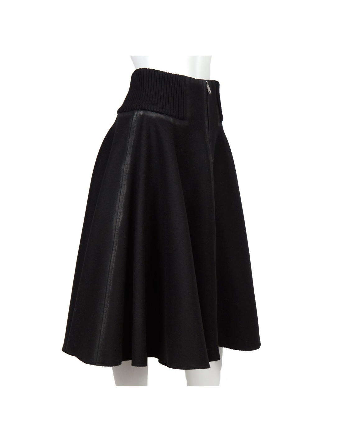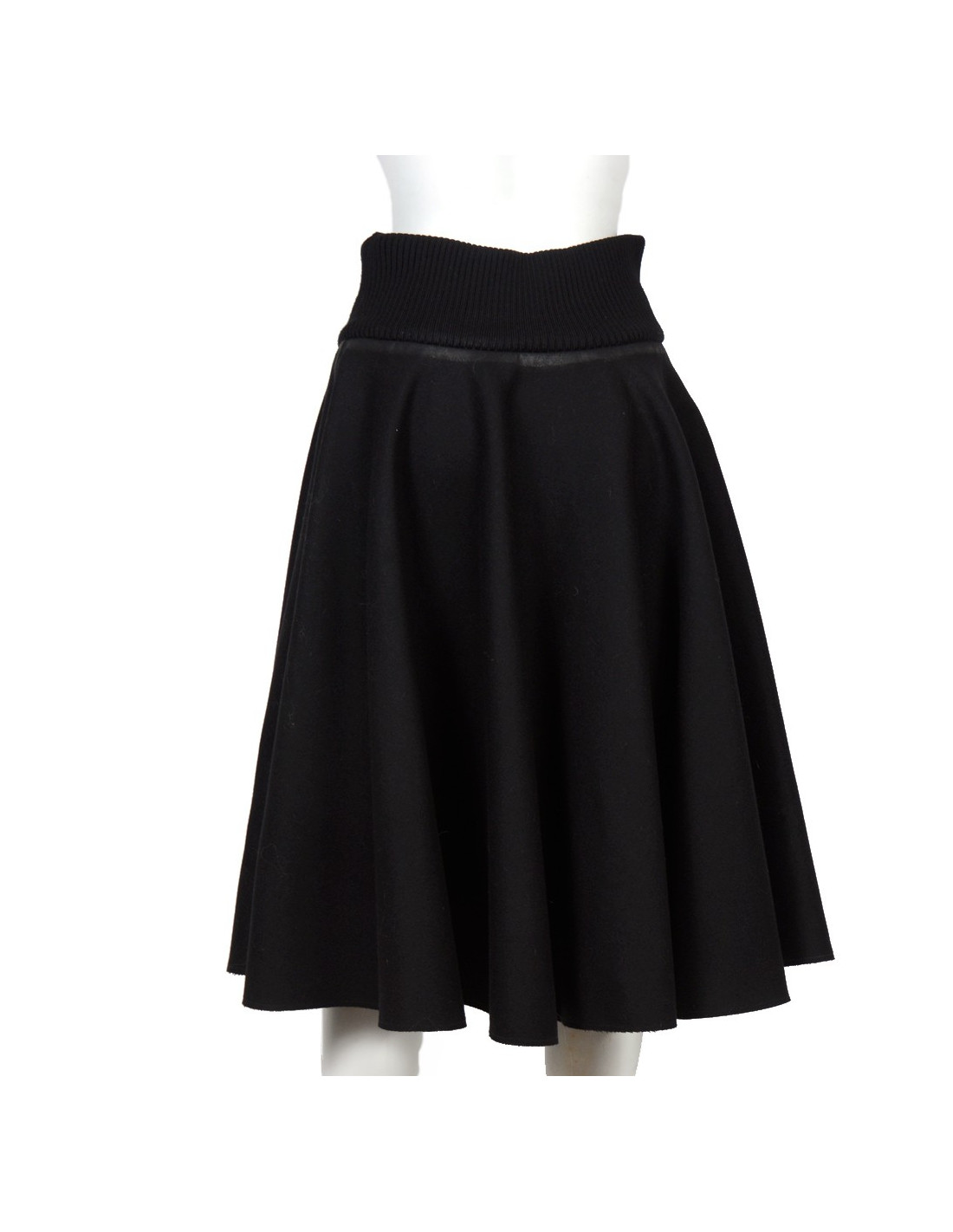 Skirt a-line ruffle Prada in Black wool cloth. Size 42 Italian is equivalent to a 38 french. Central zip. Belt stretch mesh. The contours and the edges are weathered. In very good condition. Been very little.