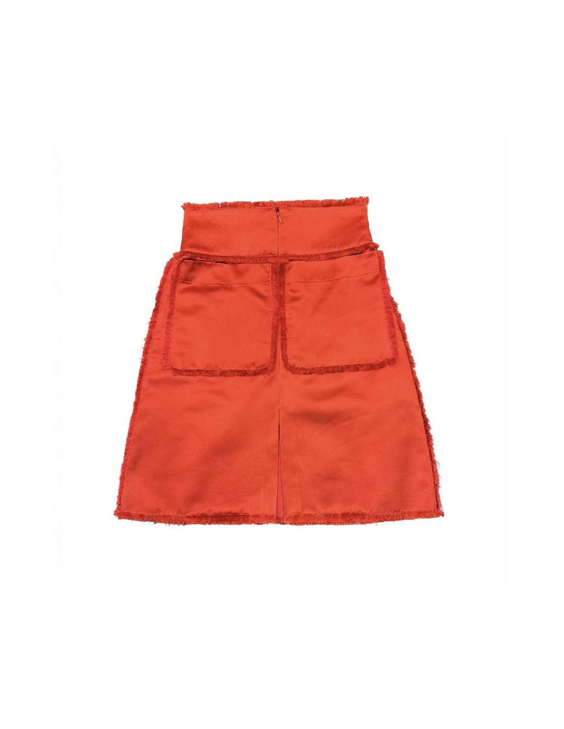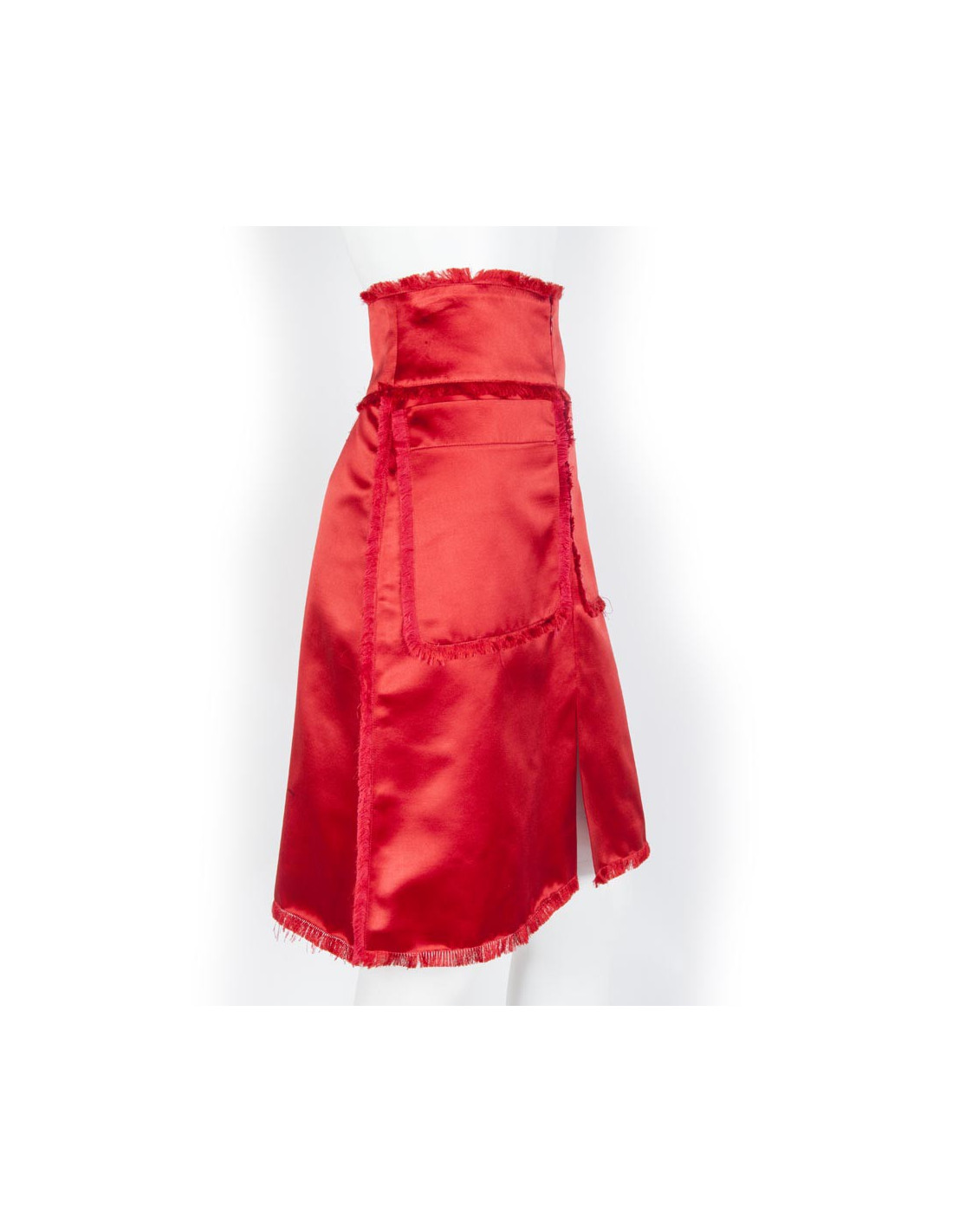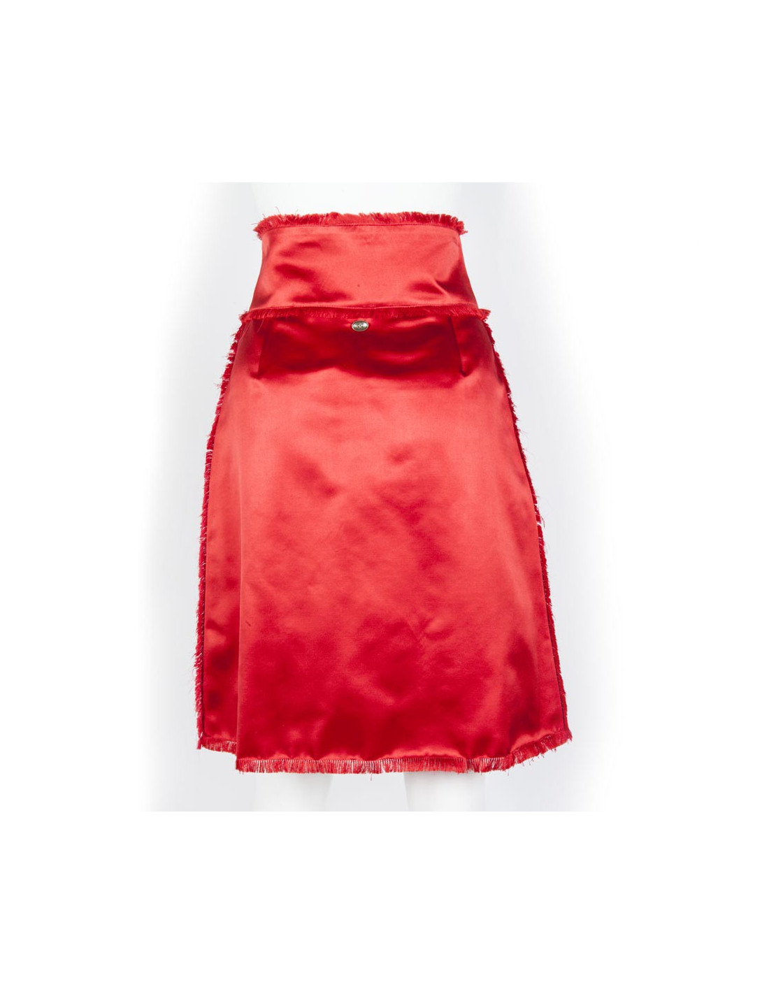 The House of Chanel's Red Duchess silk skirt. Size 38 fr. recent Collection. Zipper in the front. Two large pocket in the front. Slit at the front.