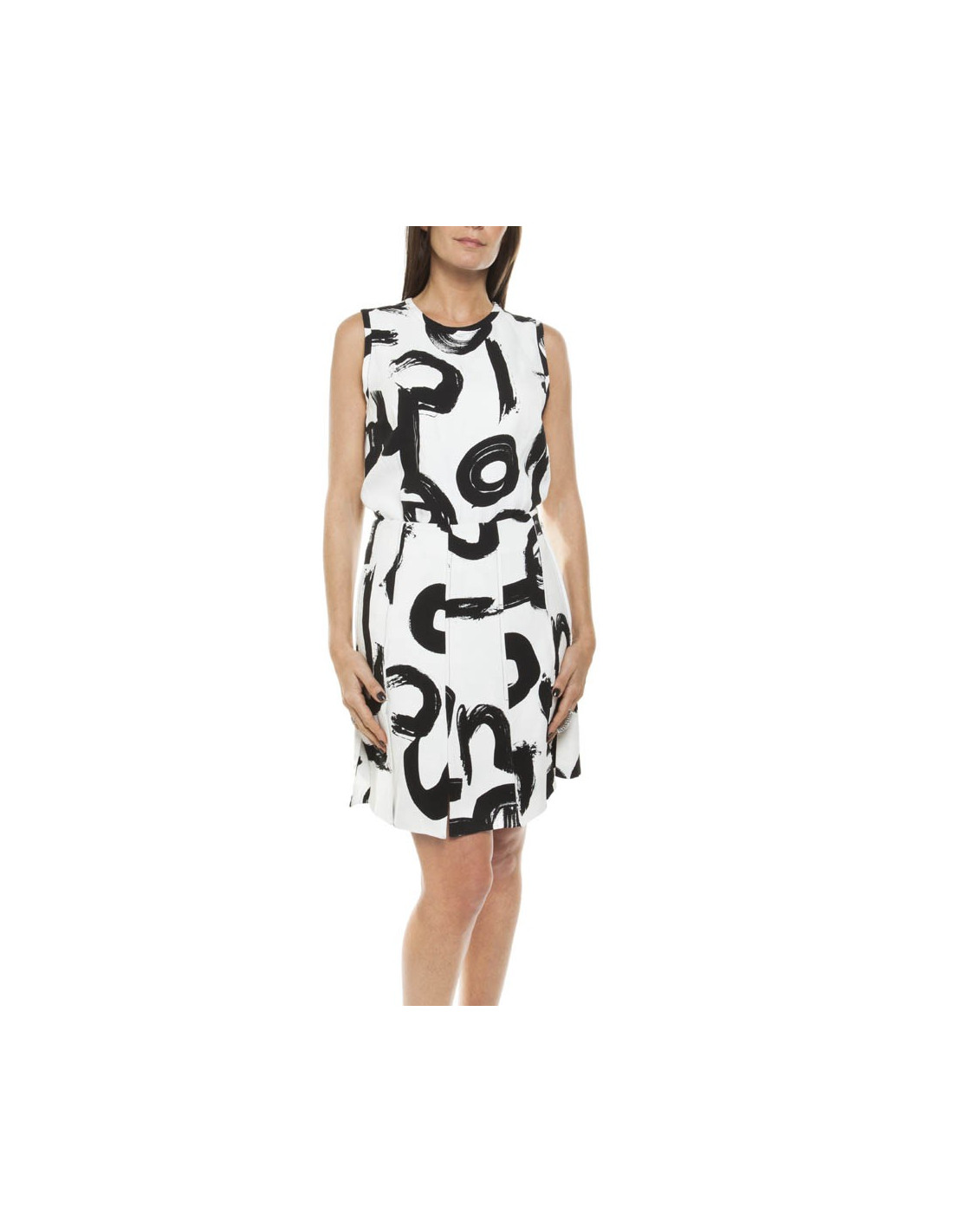 Whole skirt and top in viscose Proenza Schouler size 36. All is white print of reasons way "street art table" black. The two pieces are lined in white silk. The top is sleeveless, straight cut and closes with a snap; the skirt is pleated and split each fold (see photo). She is quietly zipped on the left side.
