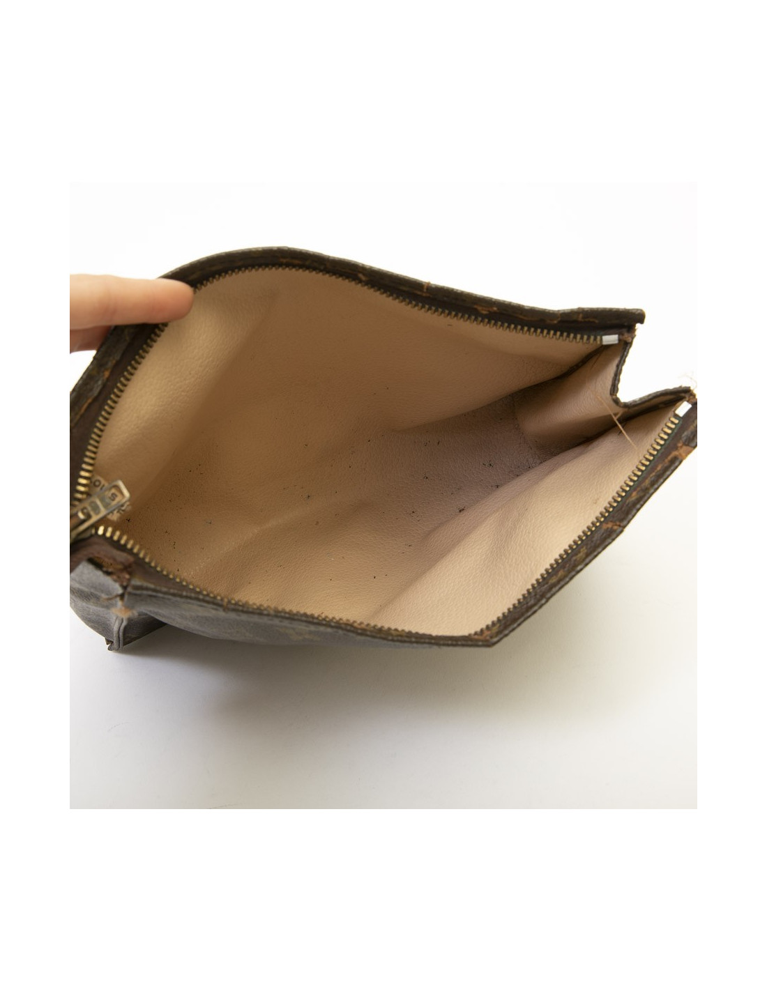 Last items in stock SMALL LEATHER GOODS HERMES toilet bag in ecru fabric GM HERMES 22380 277.90 € Hermès toilet bag in ecru fabric and lined with gold leather. In very good shape. Interior in very good condition with 4 open pockets. Stamp S from private sales. Made in France Dimensions: W 34 x H 26 x D 13 cm Will be delivered in a Valois Vintage Paris Dust bag Add to cart