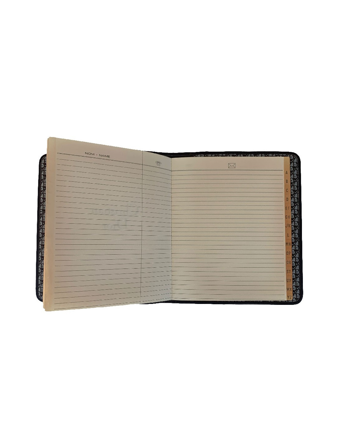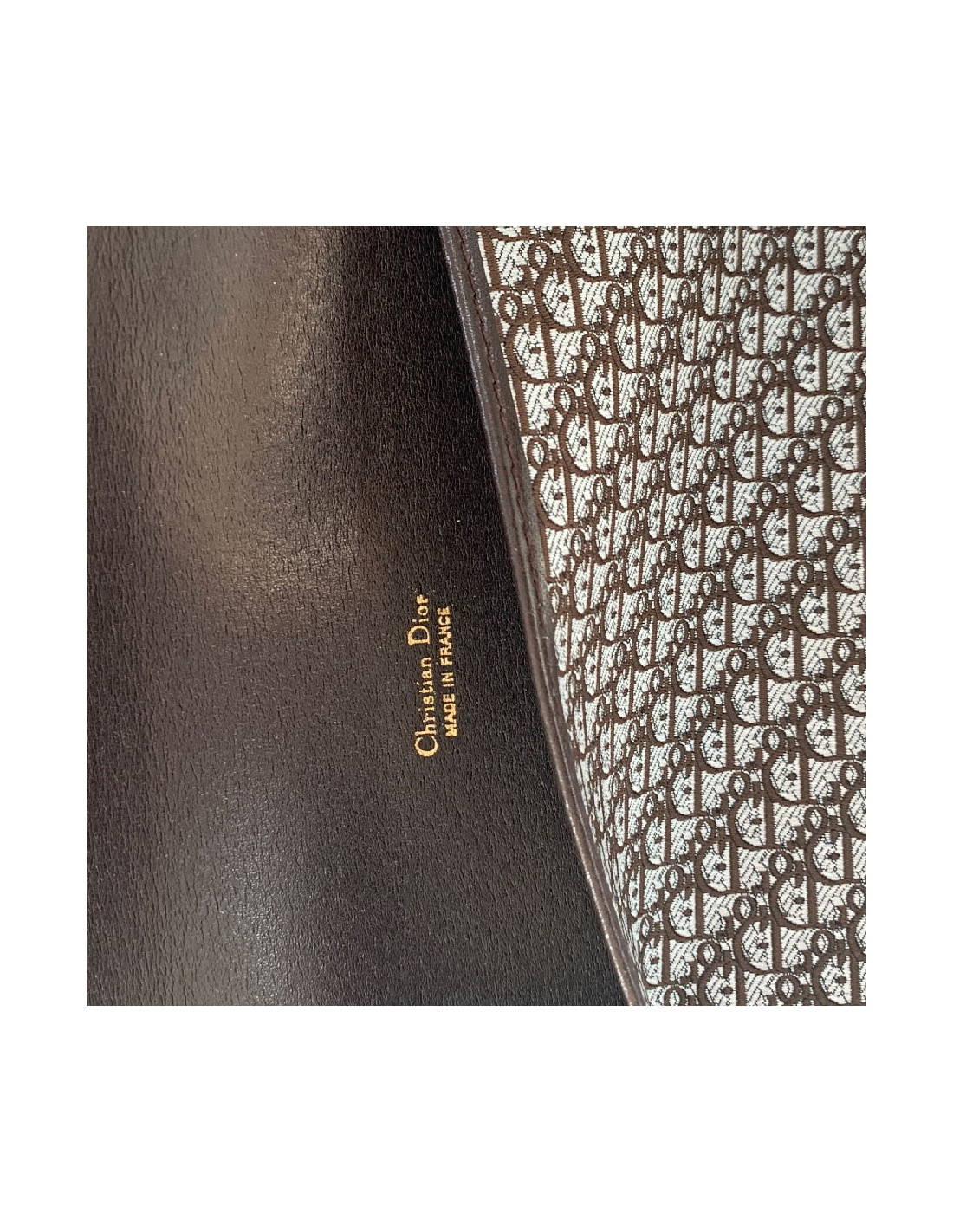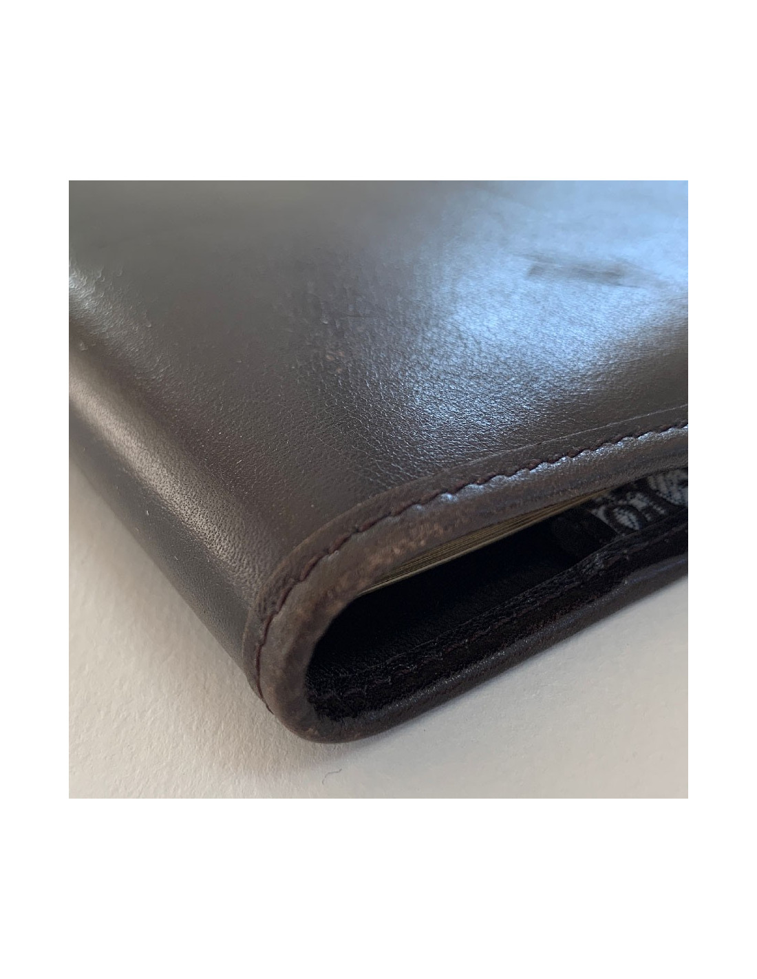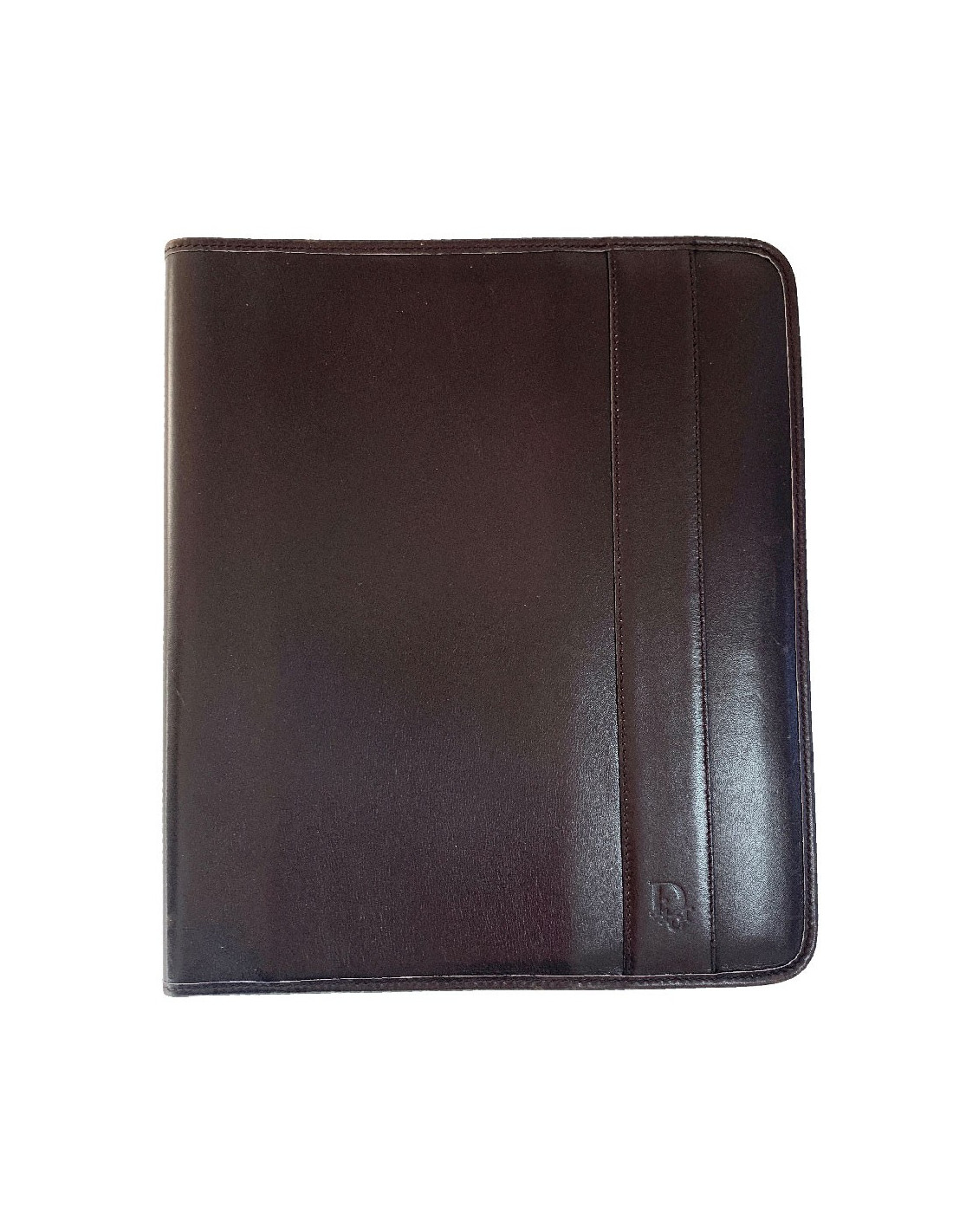 We love it! CHRISTIAN brown leather agenda cover. Vintage piece. Brown leather interior and brown monogram canvas. The interior features 2 card slots and 2 gussets for a diary. It contains the original, unused telephone directory.
