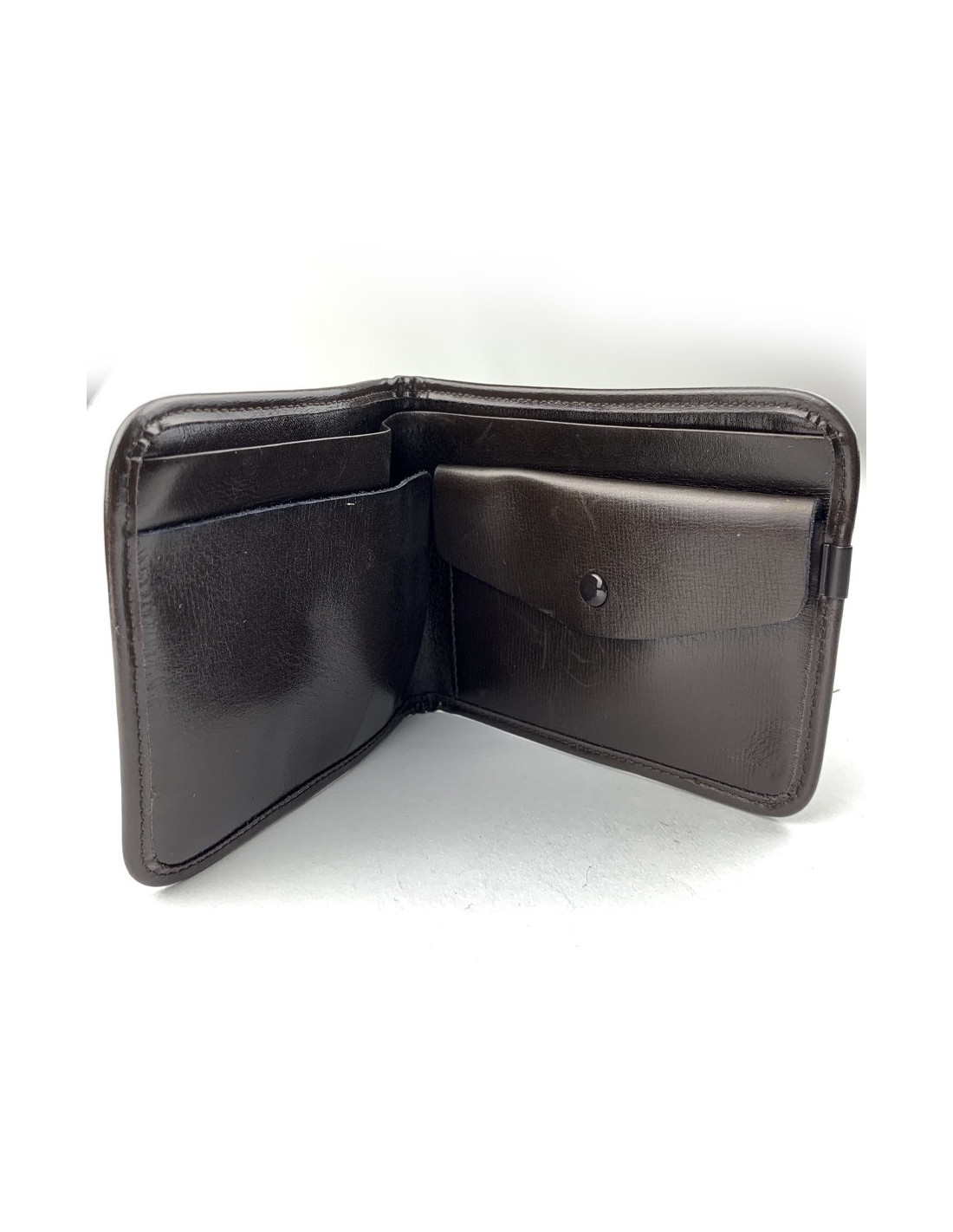 The wallet is a vintage piece in good condition. It measures 12 centimeters long, 10 centimeters wide and 1 centimeter wide. It is Made In France.