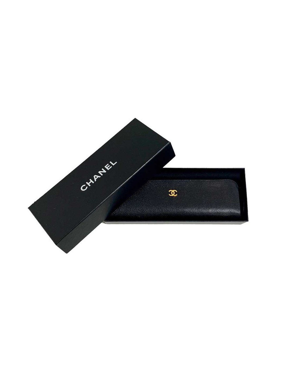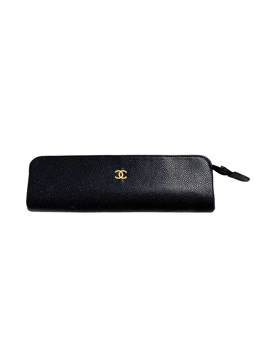 The CHANEL case is made of black caviar leather. Rectangular in shape, it is practical for carrying your pens or other small pocket items.