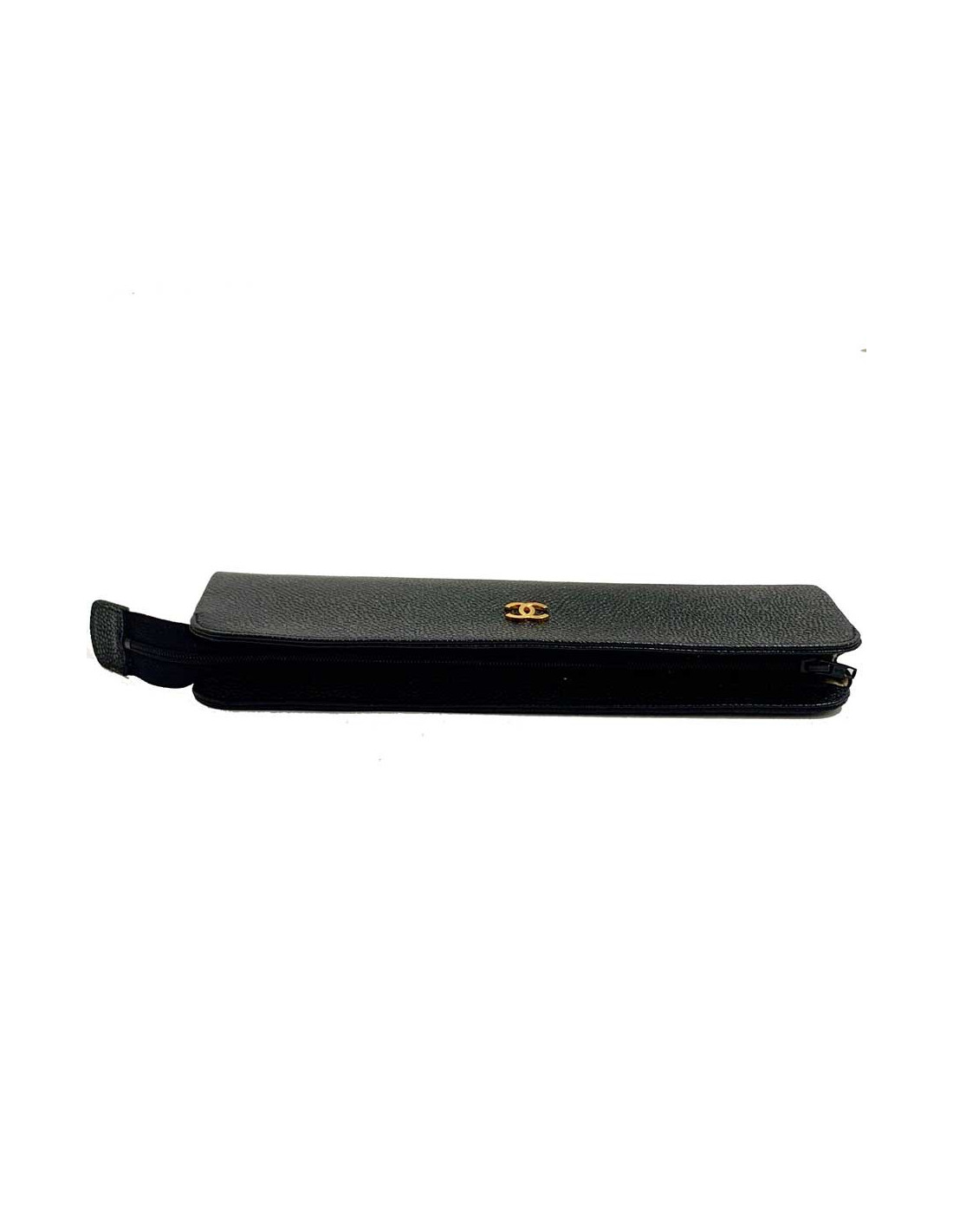 CHANEL black caviar leather case