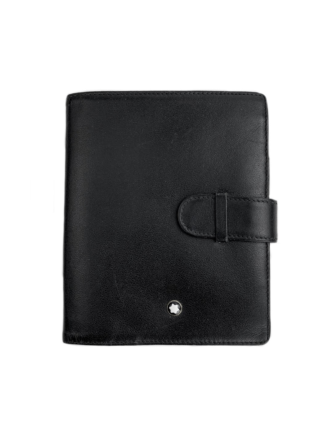 Wallet made in the prestigious Maison Montblanc. It is made of black leather with inside 4 card holders, 1 coin purse, 3 small compartments for your note, 1 large compartment for your various small documents. It closes with a sliding strip. Distinctive sign of the brand: the white Montblanc star.