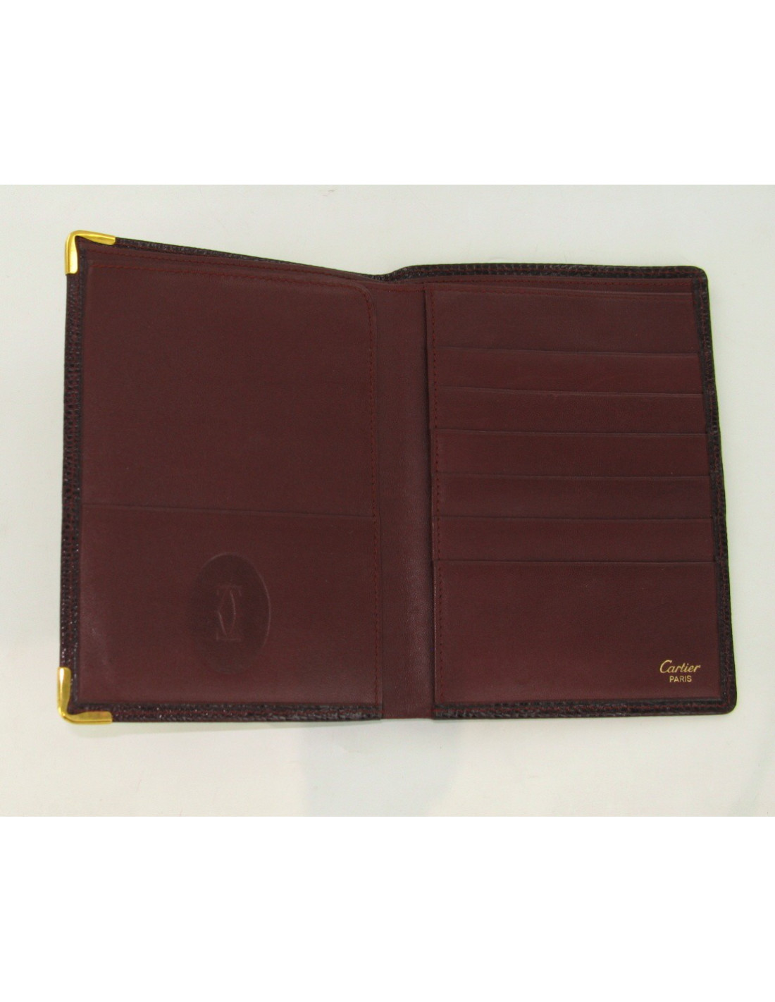 Portfolio CARTIER Burgundy lizard adorned with Golden corners.