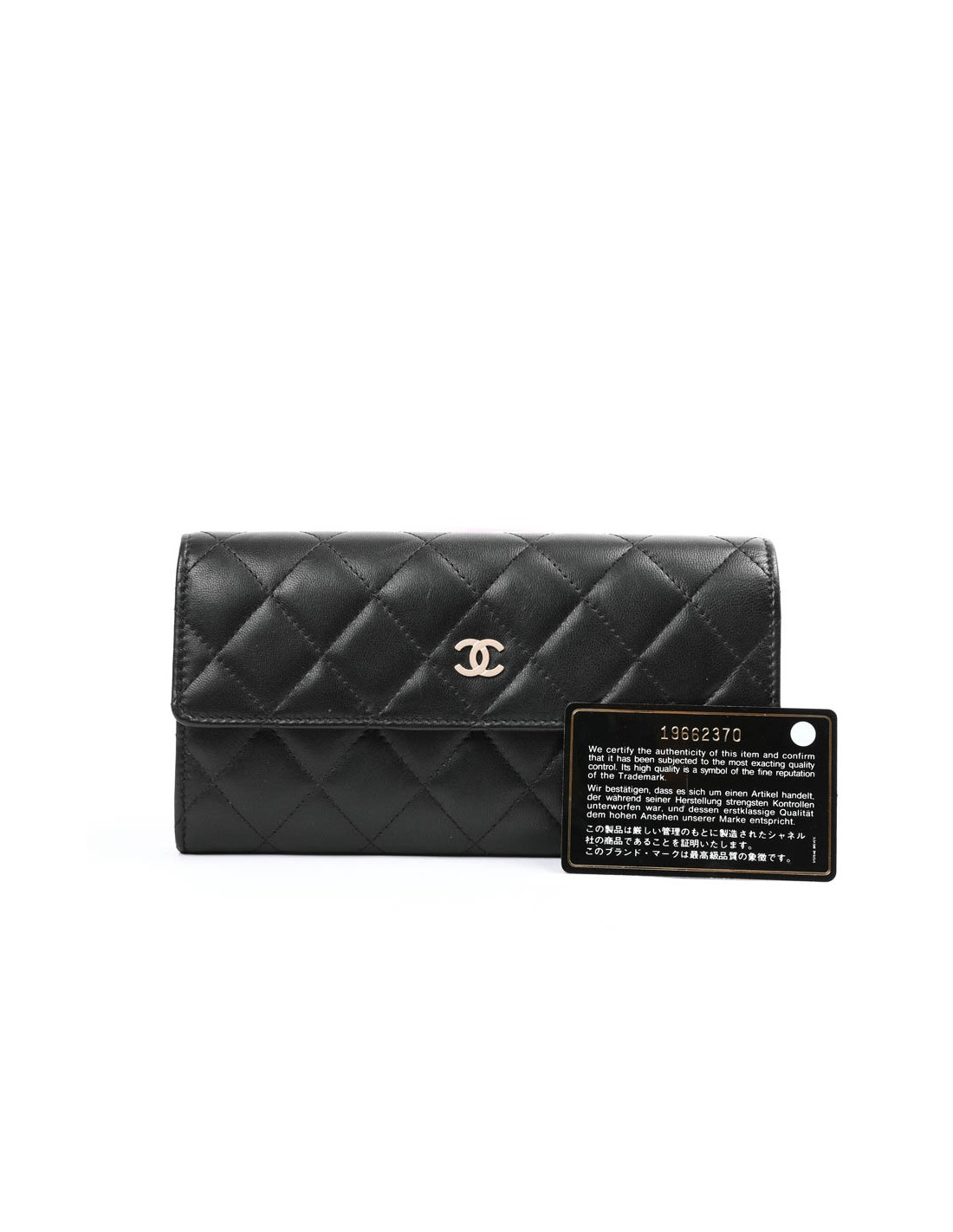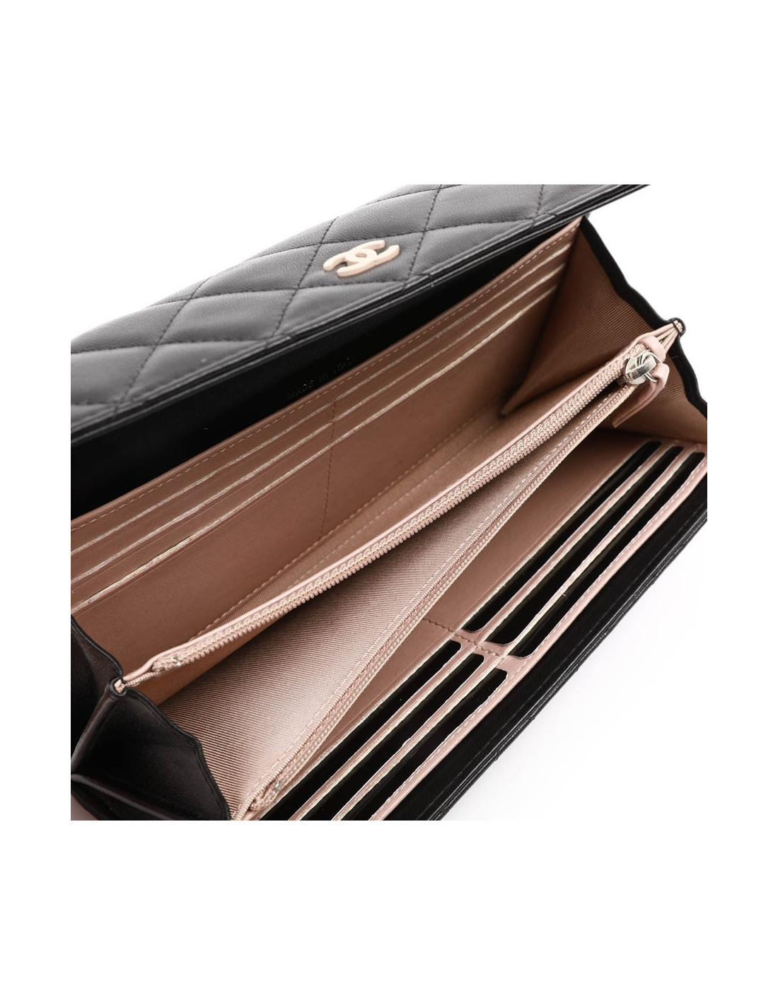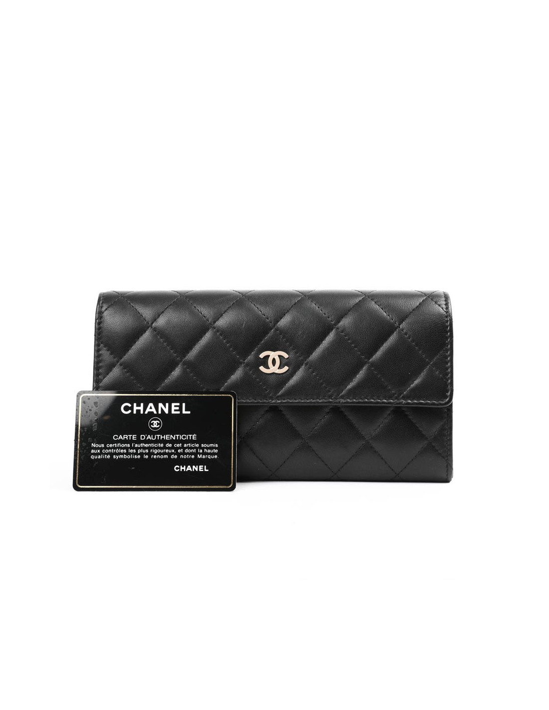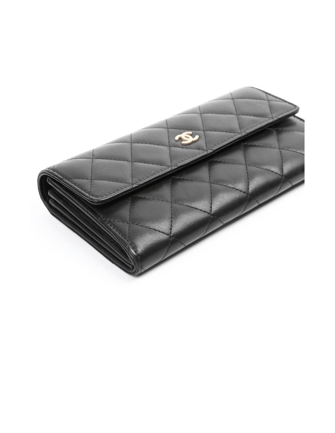 Portefeuille à rabat CHANEL cuir matelassé noir