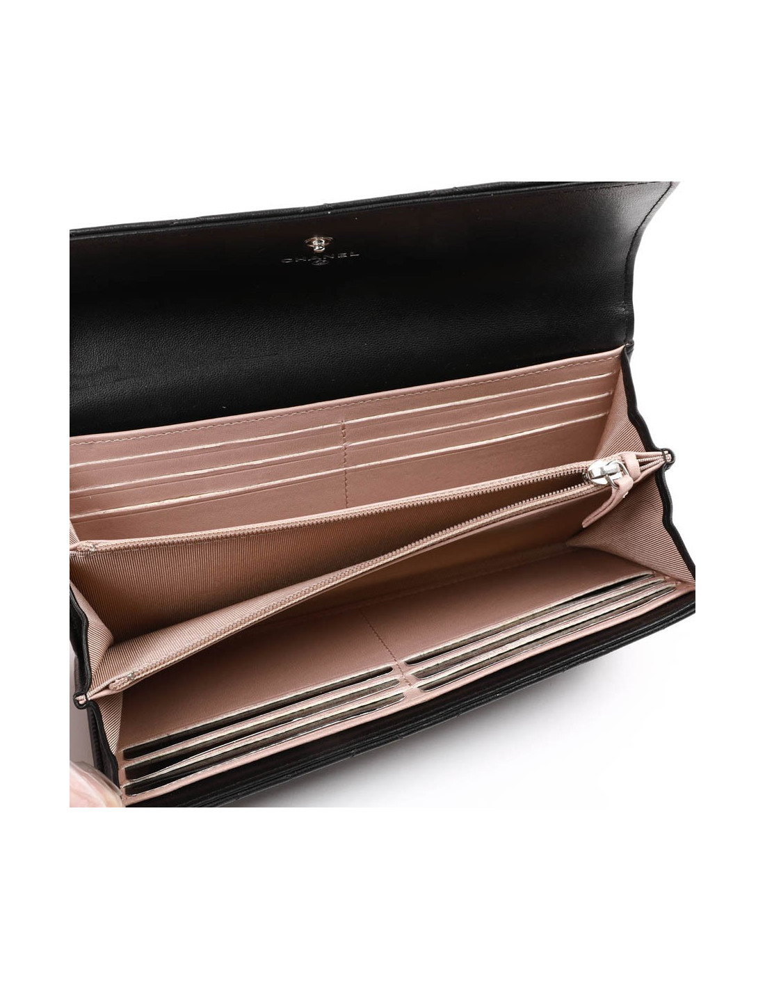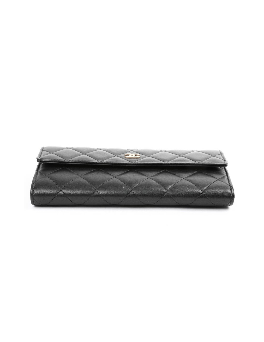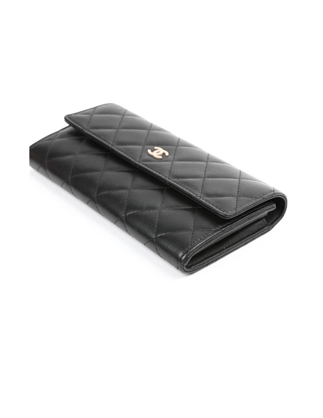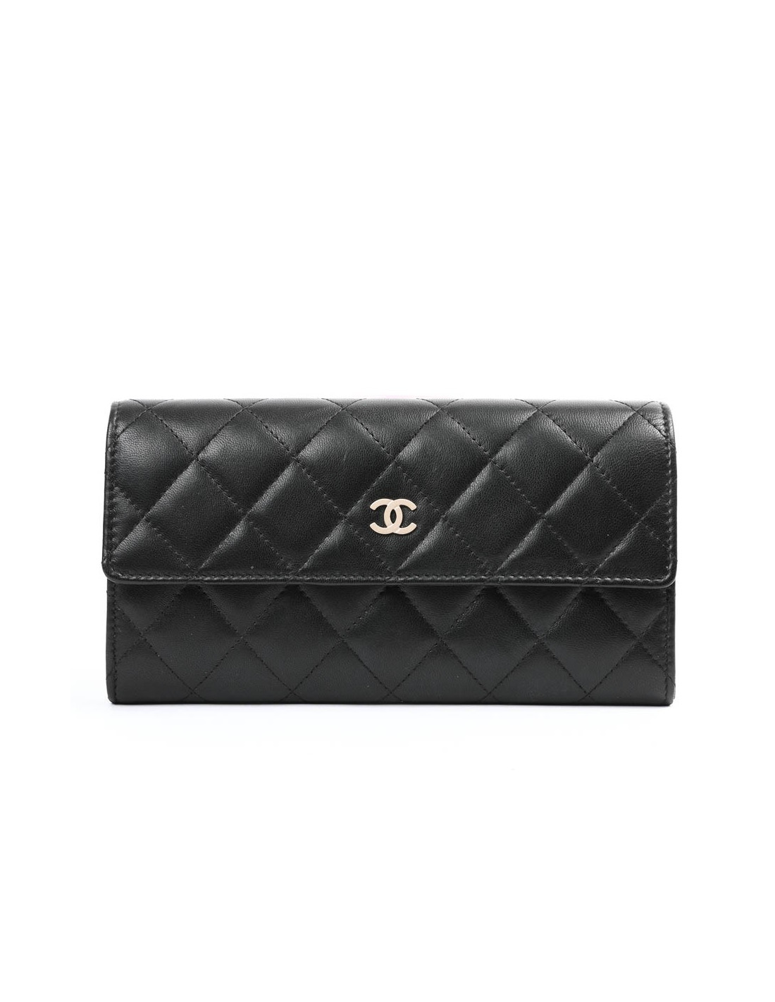 Portefeuille à rabat CHANEL cuir matelassé noir