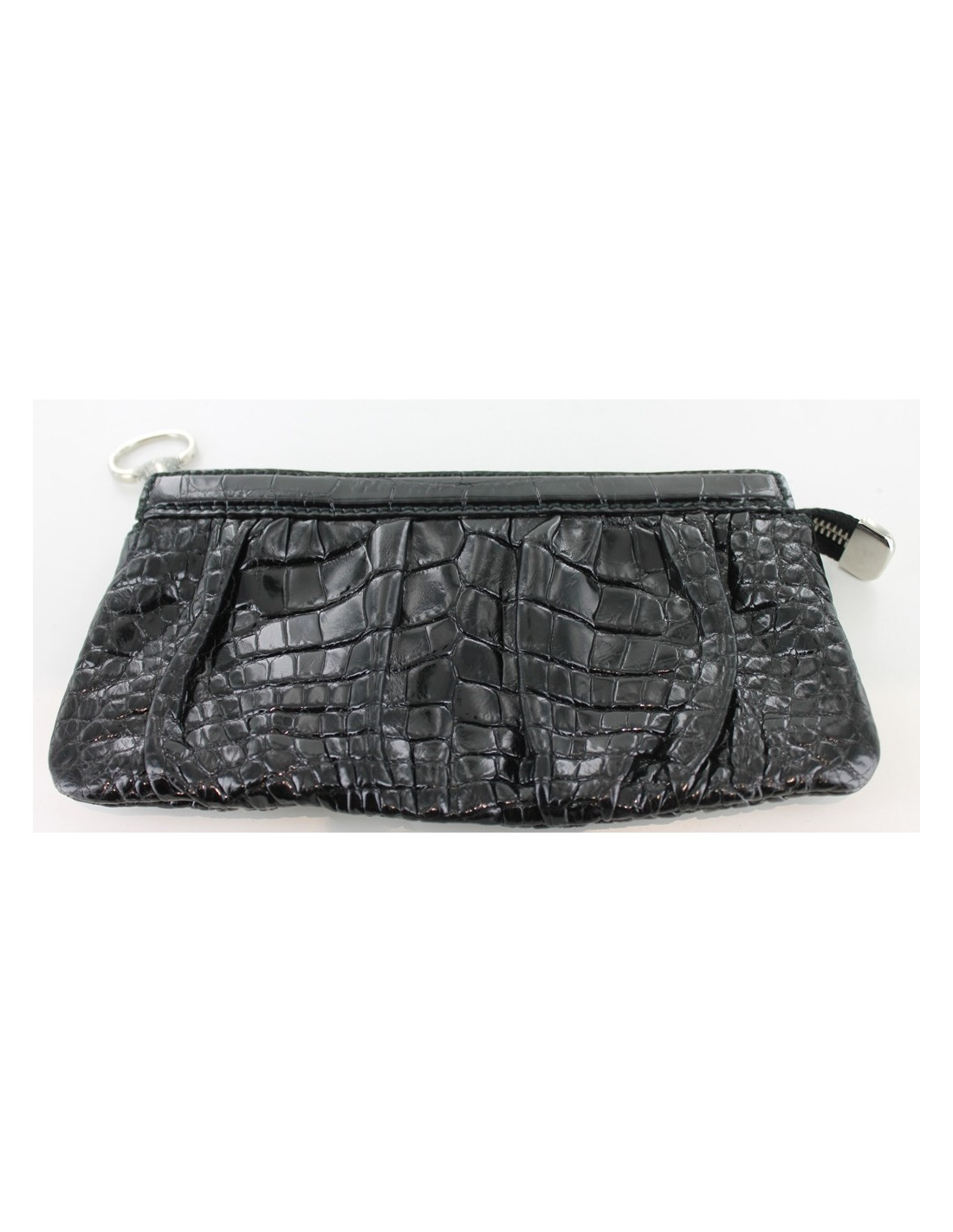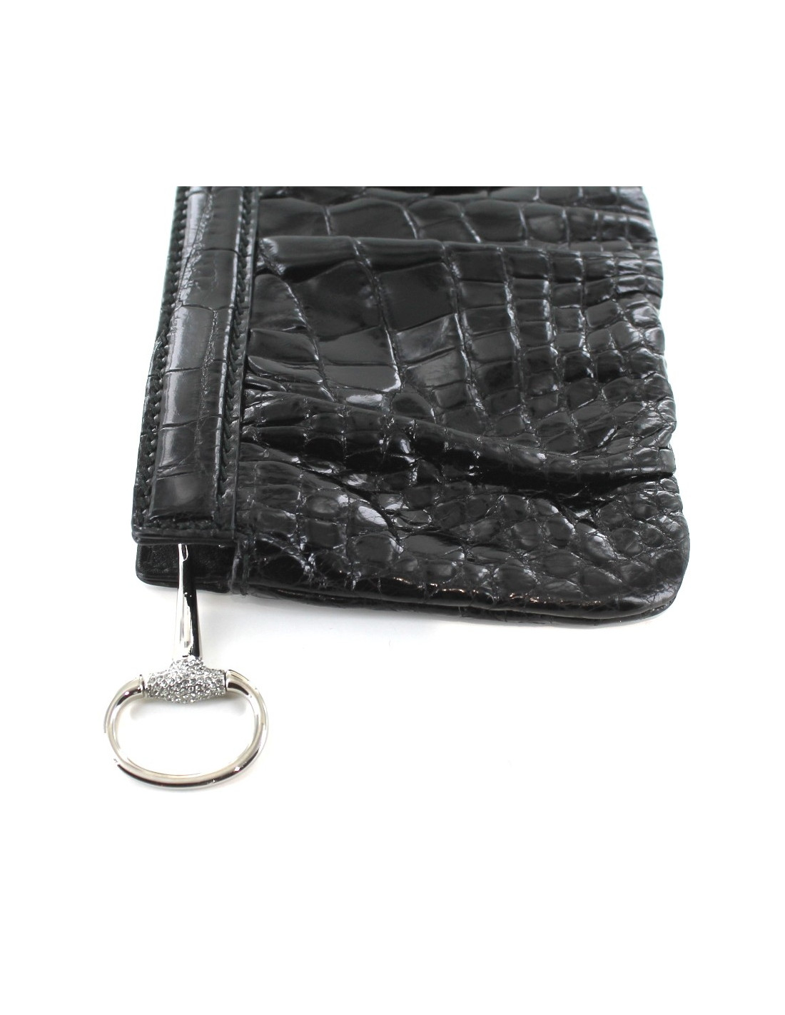 GUCCI wallet leather zipped black crocodile (closing time Flash silver metal). Metal silver zipper loop represents the home silge, and is adorned with silver rhinestones. Very elegant, this pouch will decorate your evening wear. GUCCI engraved signature. Black leather interior lining. Sold with his dustbag. Made in Italy.