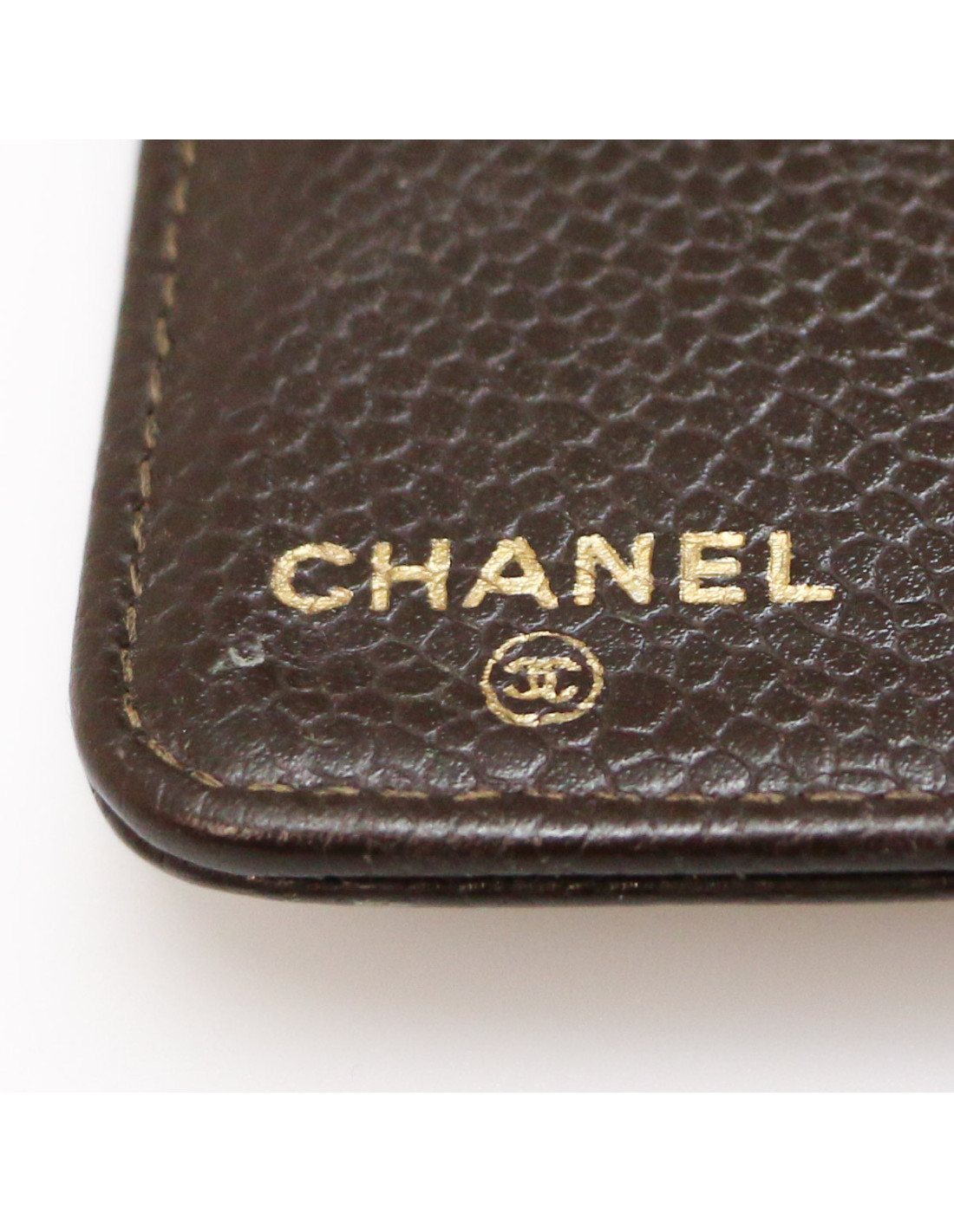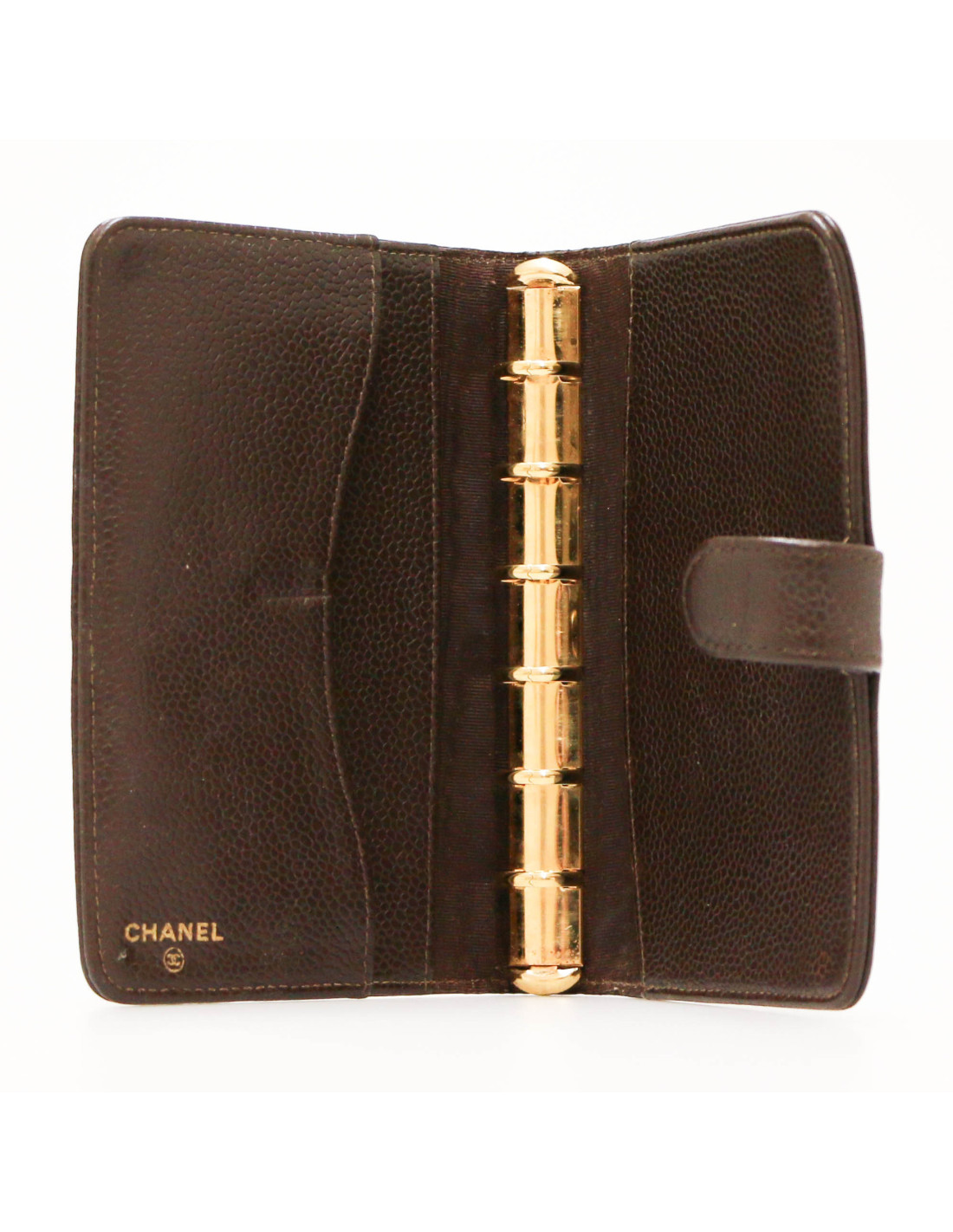 Details : CC detail on front, press stud, gold rings, three inside slots.