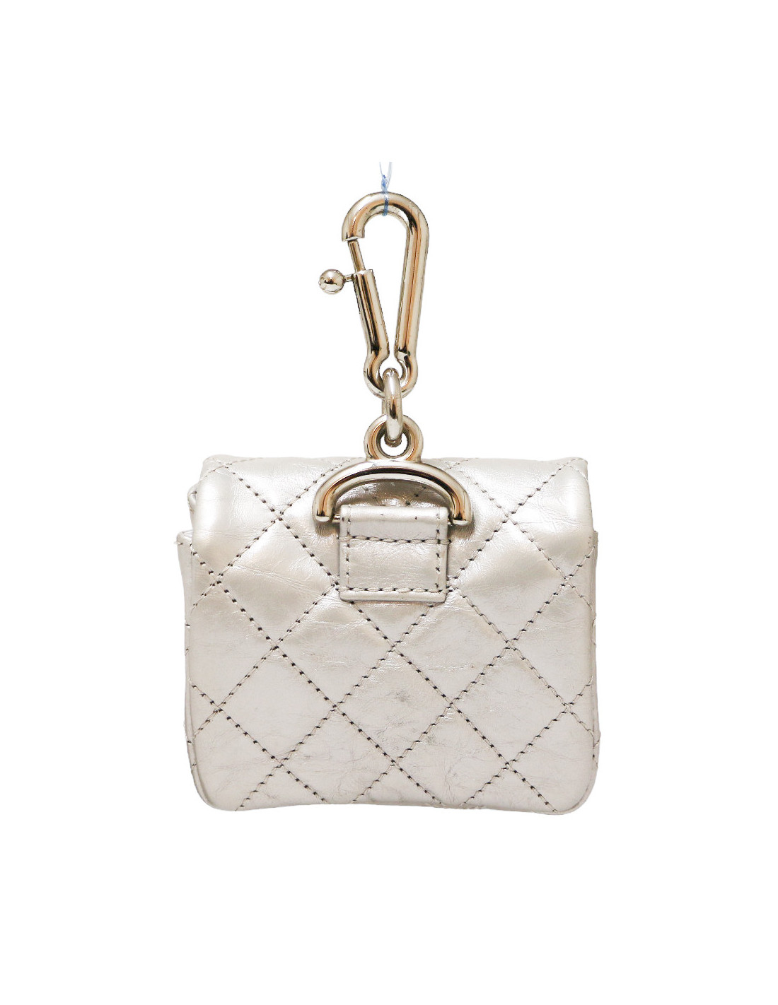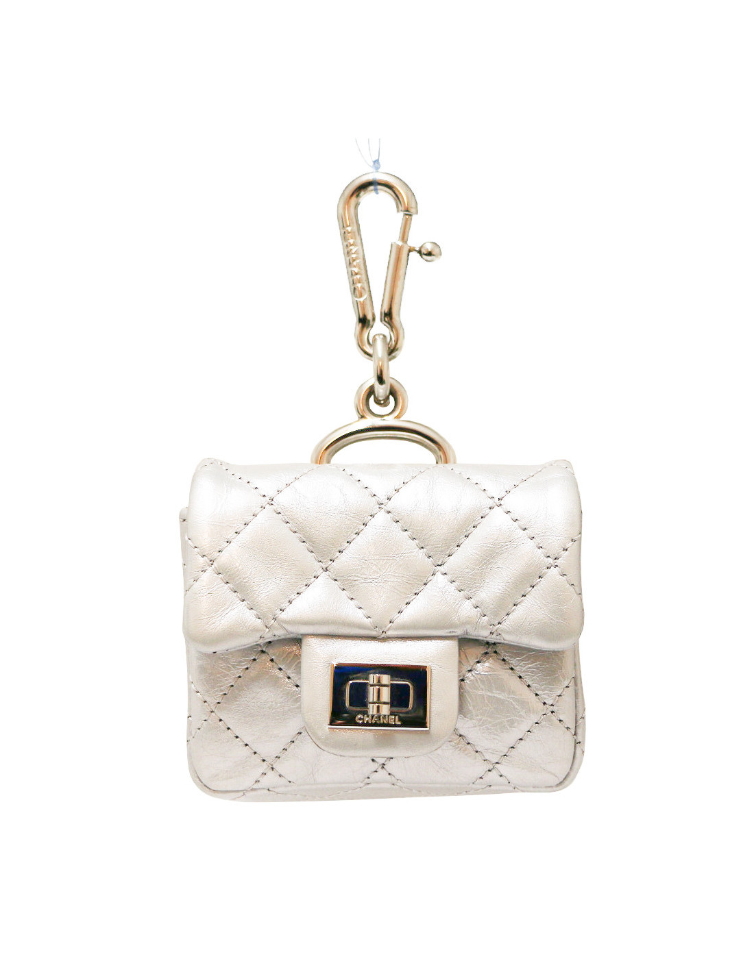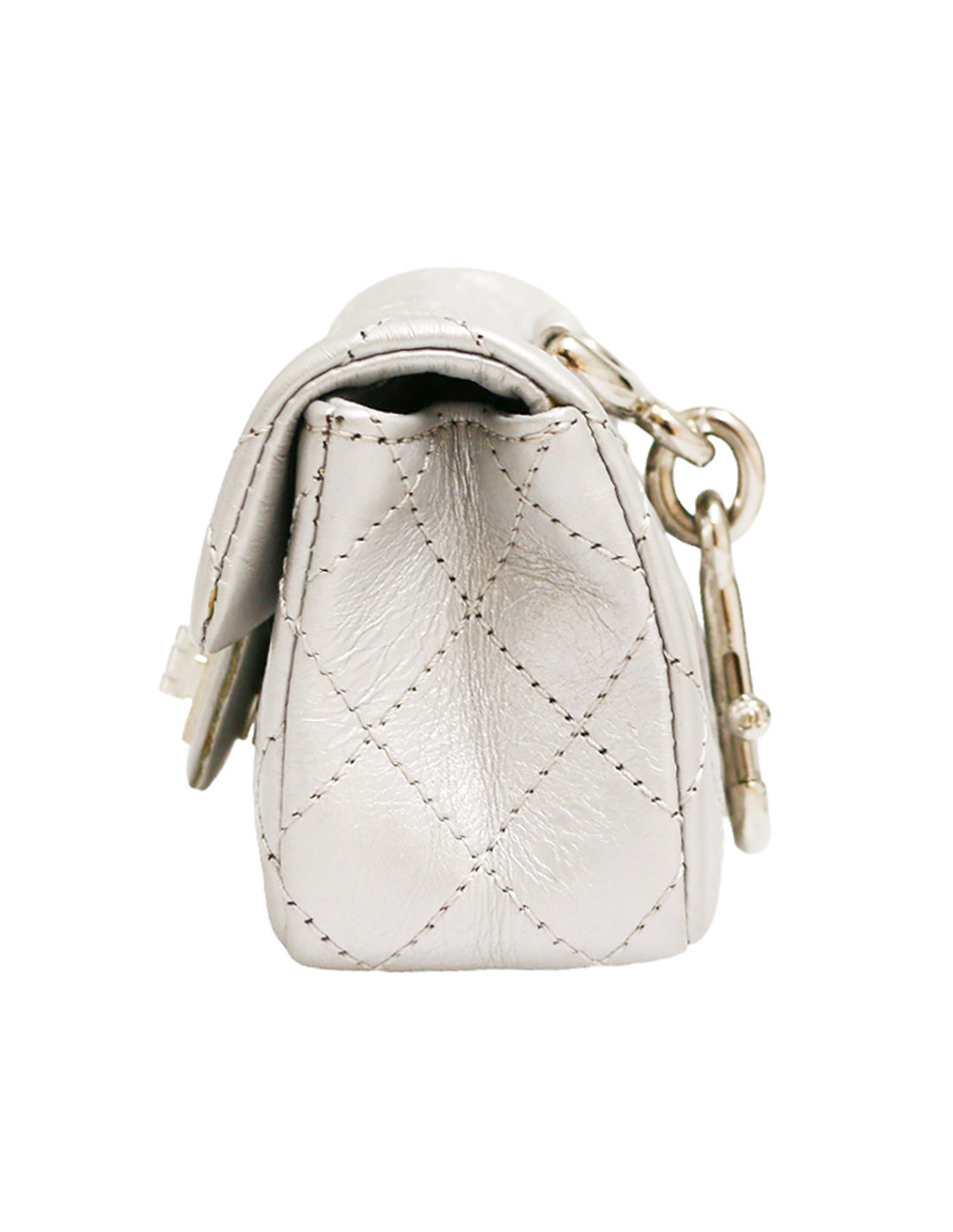 CHANEL silver leather mini charm bag