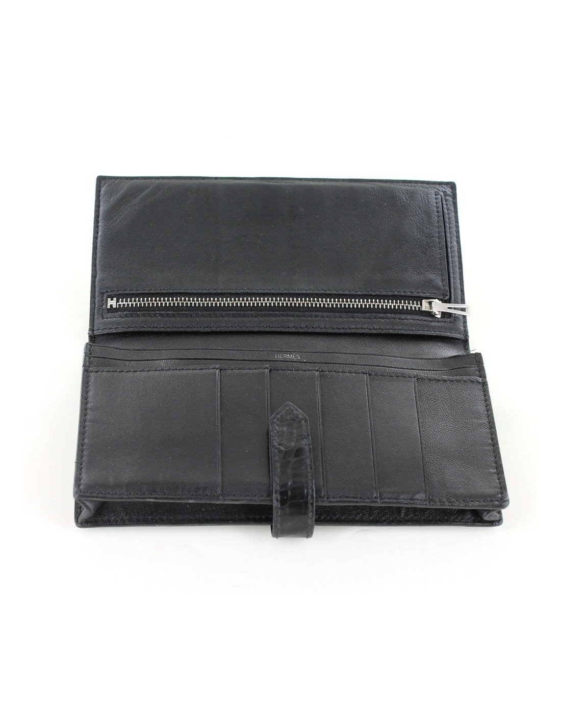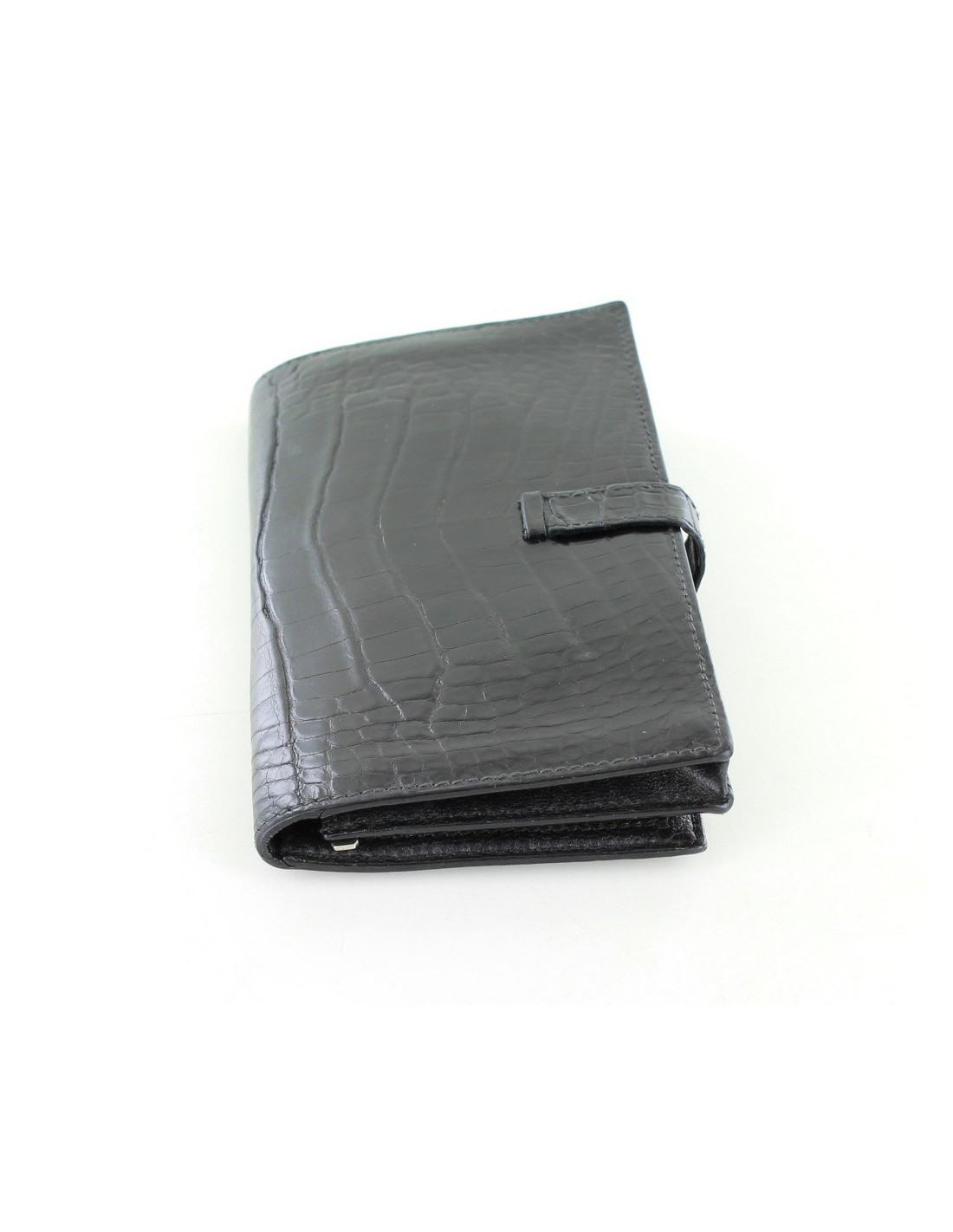 Very elegant crocodile porosus, black mat Hermes L portfoliobe M - jewellery Silver (micro scratches)- smooth leather interior with 6 slots for credit cards and 5 compartments including 1 zipped. It is in very good condition-