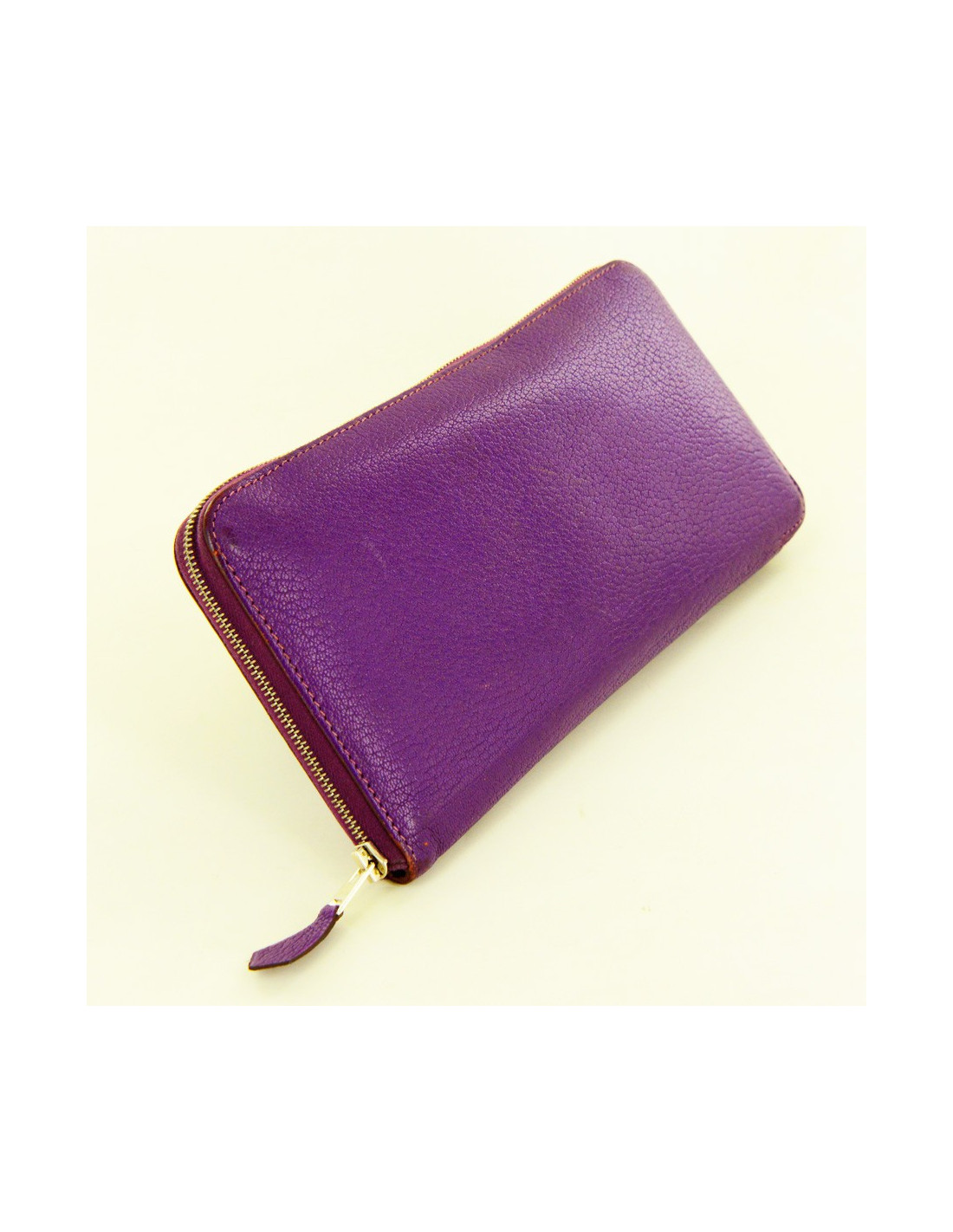Portfolio "Companion", Hermes purple leather. In very good condition. There are 12 slots for credit cards. 3 compartments including a zipped to the currency and 2 additional slots for paper or bank notes.