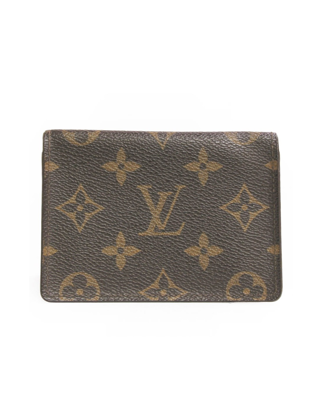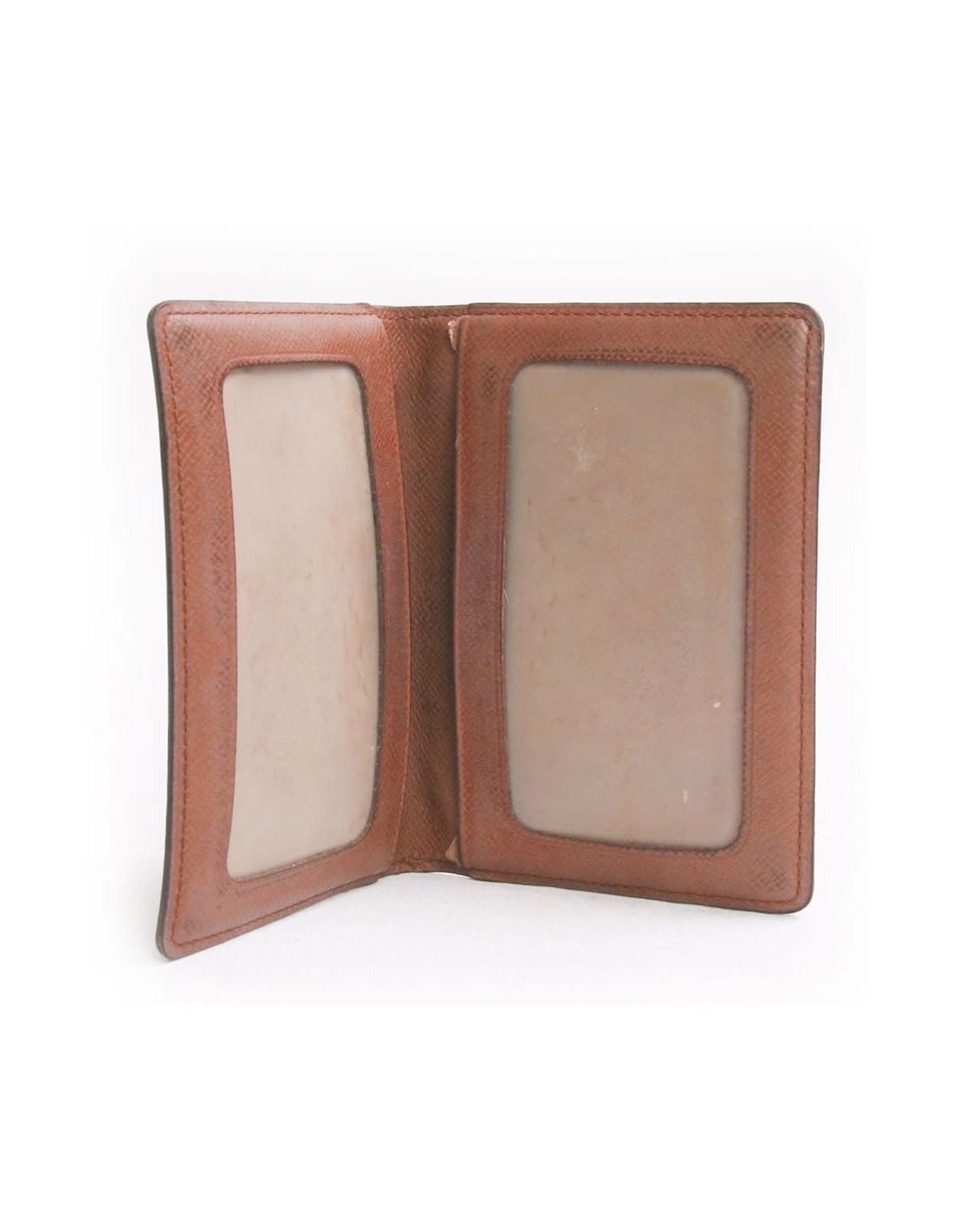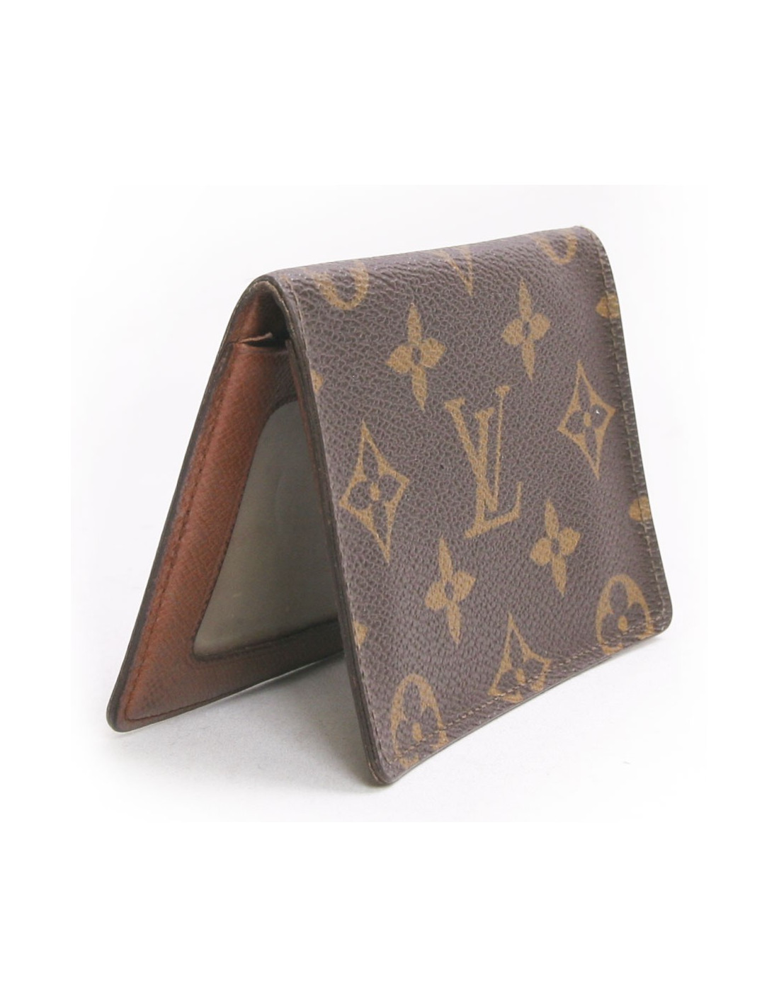 Porte-cartes vintage en toile enduite monogrammé Louis Vuitton. Cuir intérieur marron en cuir grainé.Emplacements réservé aux cartes de crédit