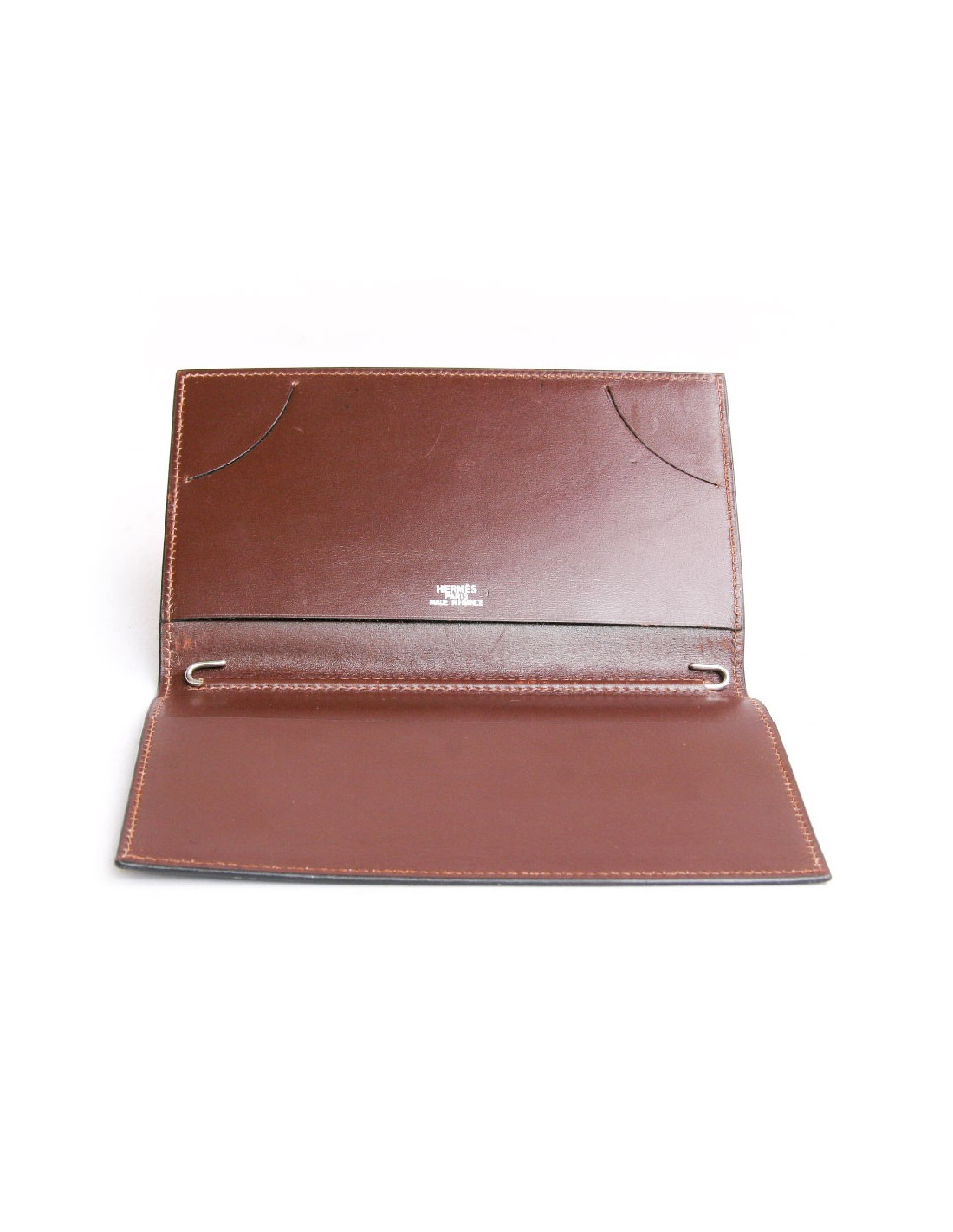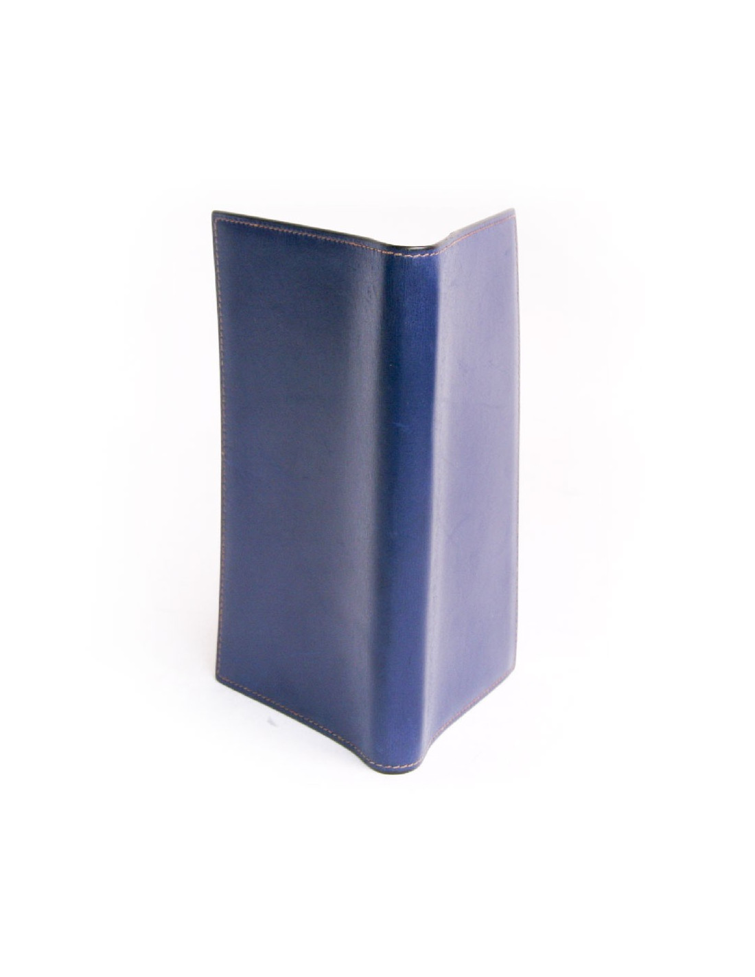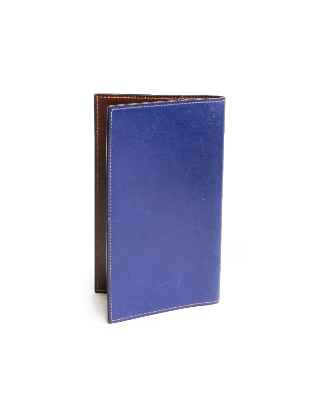 Details: Hermès two-tone diary cover, in ink-blue box leather, saddle-stitched, lined in brown box leather. There are signs of use.
