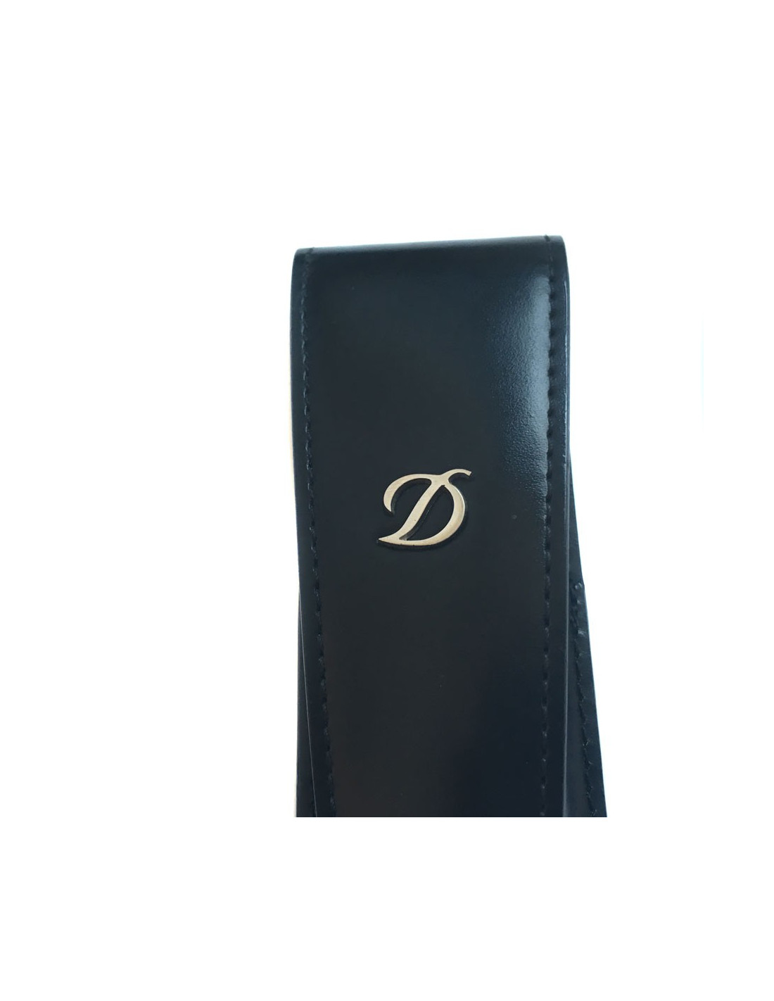 S.T. Dupont black smooth leather pen holder. Case flap that can contain 1 to 2 pens according to their size. Light scratches on the leather. Smell of tobacco.