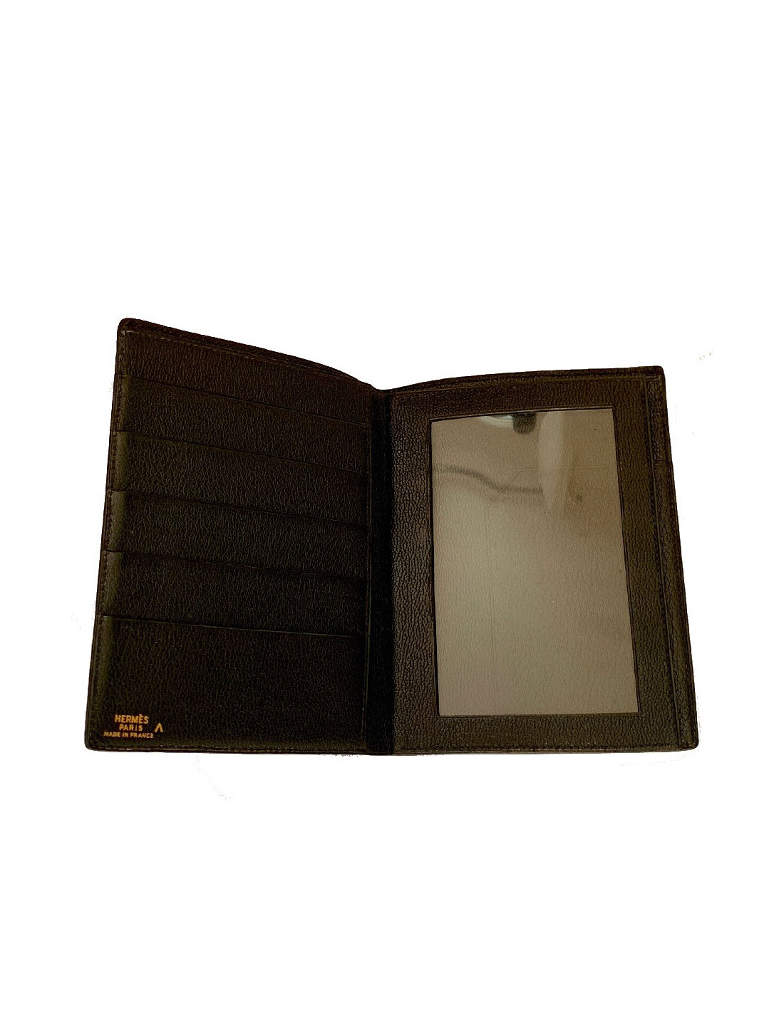 Last items in stock SMALL LEATHER GOODS HERMES brown leather card and planner holder HERMES 29840 390.00 € HERMES brown leather card and planner holder Condition : very goodMade in FranceMaterial : Box leatherColor : brownMeasurements : closed 10.5 x 13.5 cmLetter : O in a squareYear: 2011Details: 4 card slots, 1 large slot Add to cart