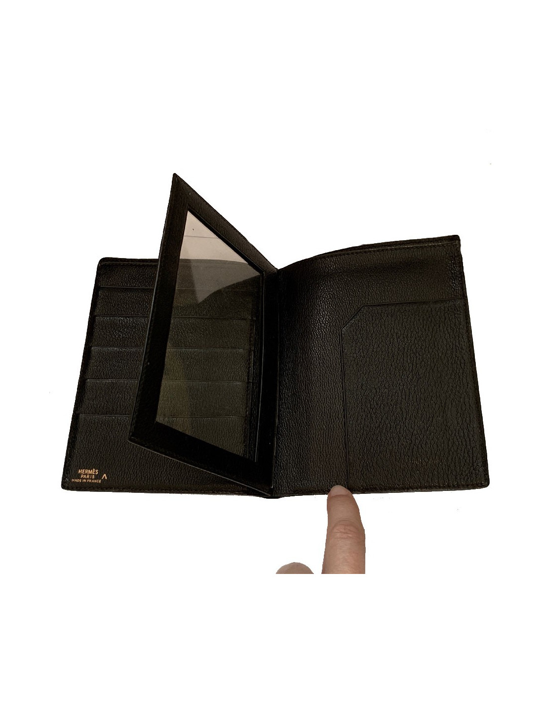 Last items in stock SMALL LEATHER GOODS HERMES Vintage picture holder in black Box leather HERMES 26850 400.00 € HERMES Vintage picture holder in black Box leather Etat: goodMaterial: leatherColor: blackMeasurements: 15.5 x 10.5 cm AUTHENTICITY CERTIFIED by our expert team since 1998. Add to cart